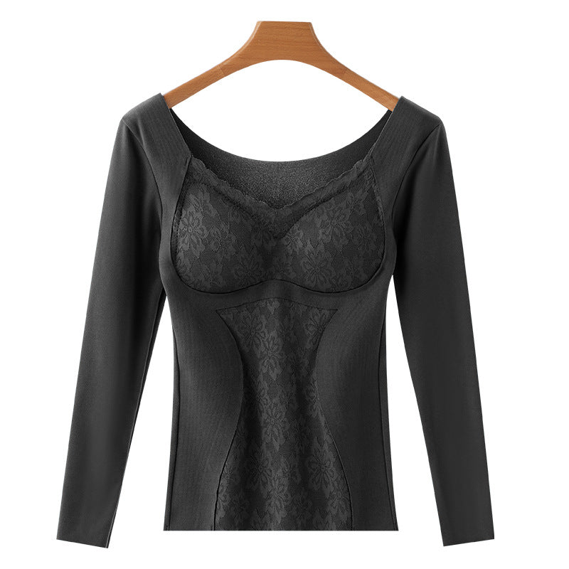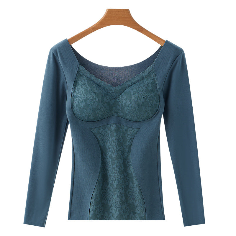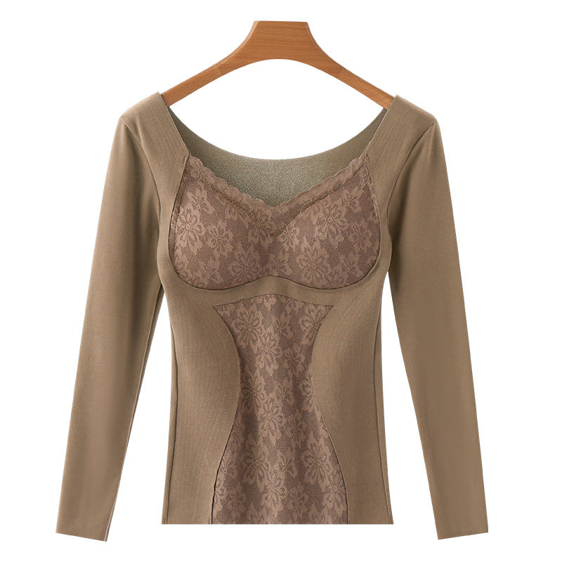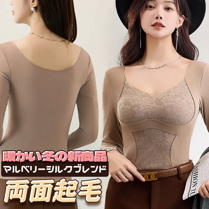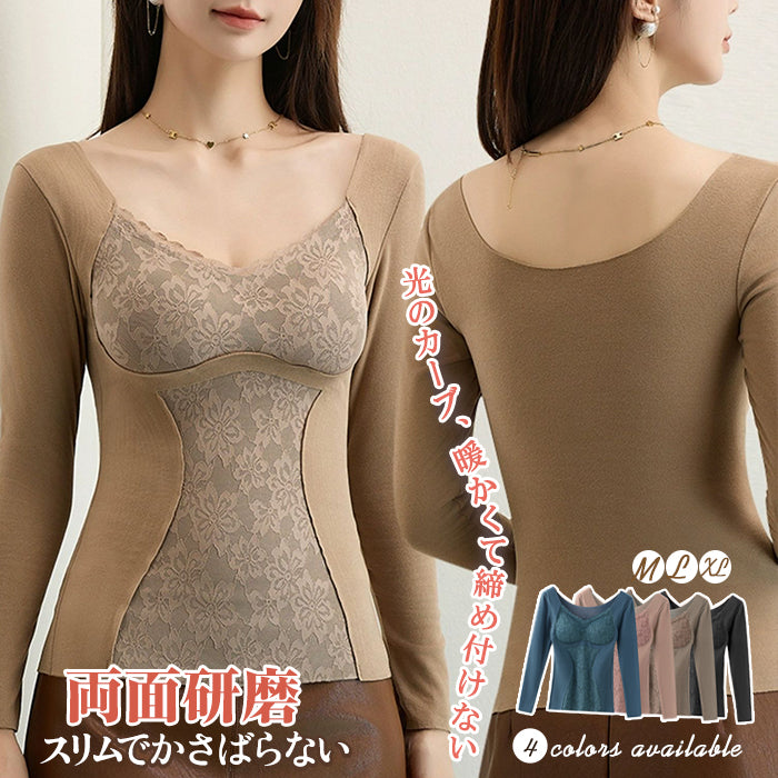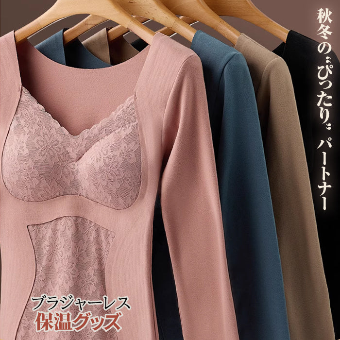 インナー トップス レディースカップ付きあったか素材 Vネック レースインナー トップス