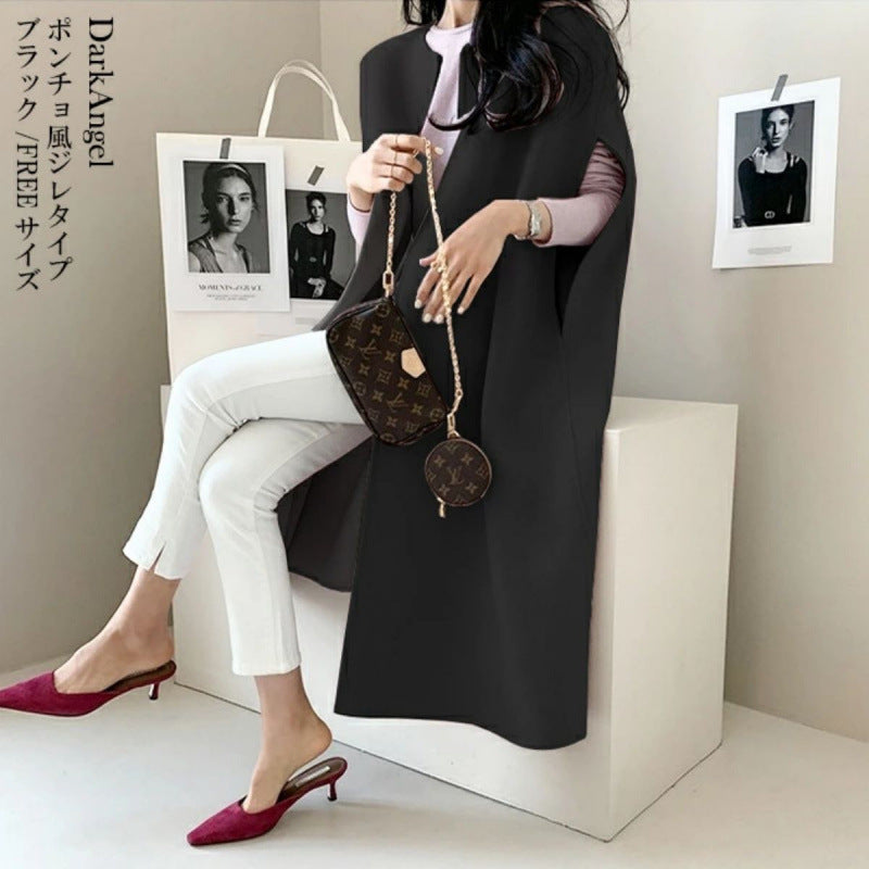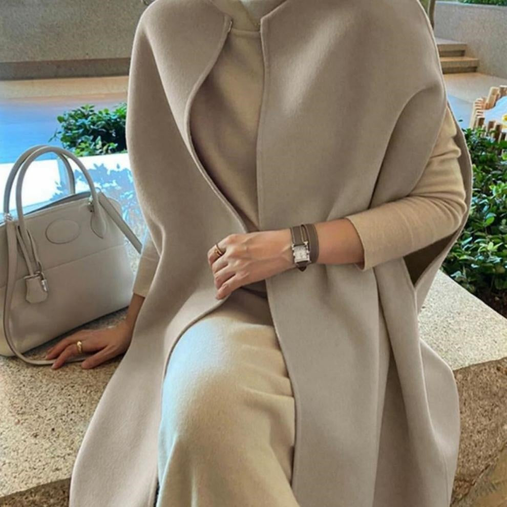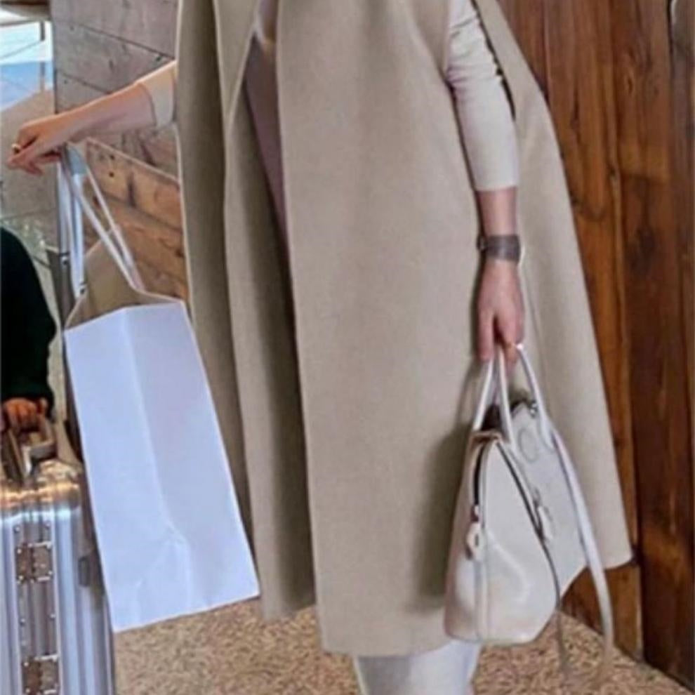 ウールコート レディース ノーカラー ミディアム丈 オーバーサイズ フードなし 無地 秋冬