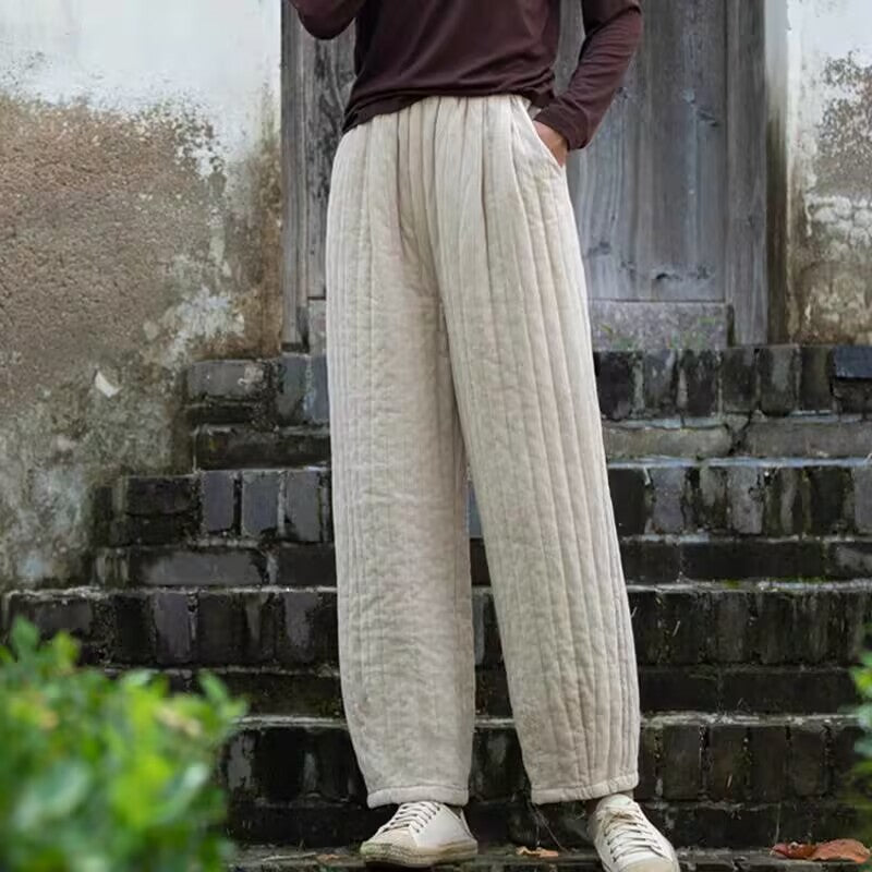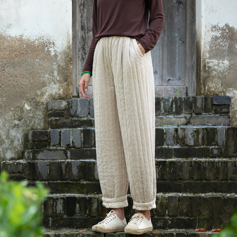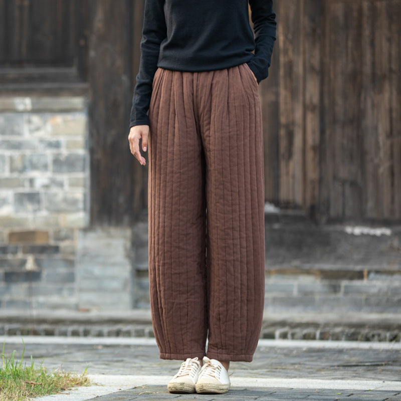 キルティングパンツ ワイドパンツ 高腰 デザイン レディース 秋冬アイテム シンプル