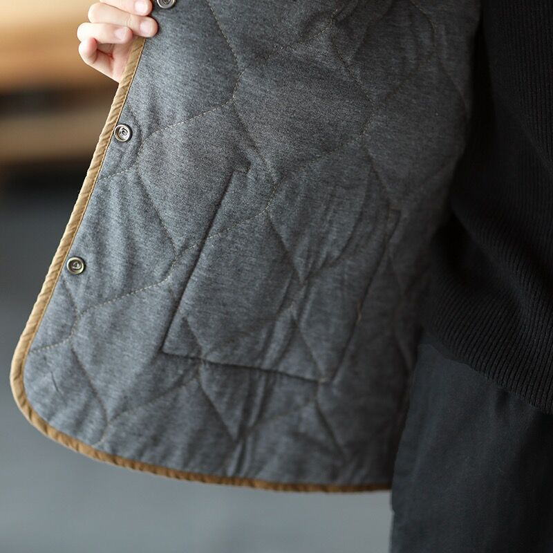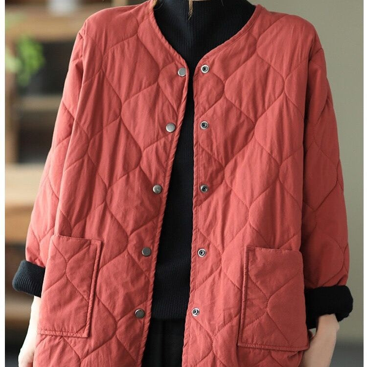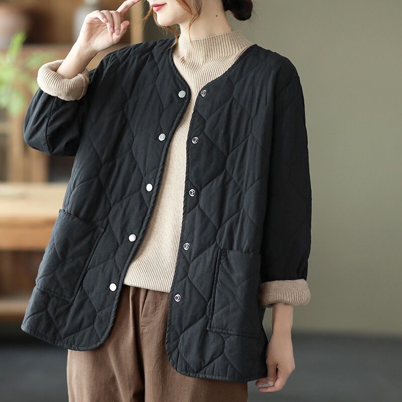 キルティング ジャケット 長袖 レディース ラウンドネック カジュアル 普段着 レトロ 女性