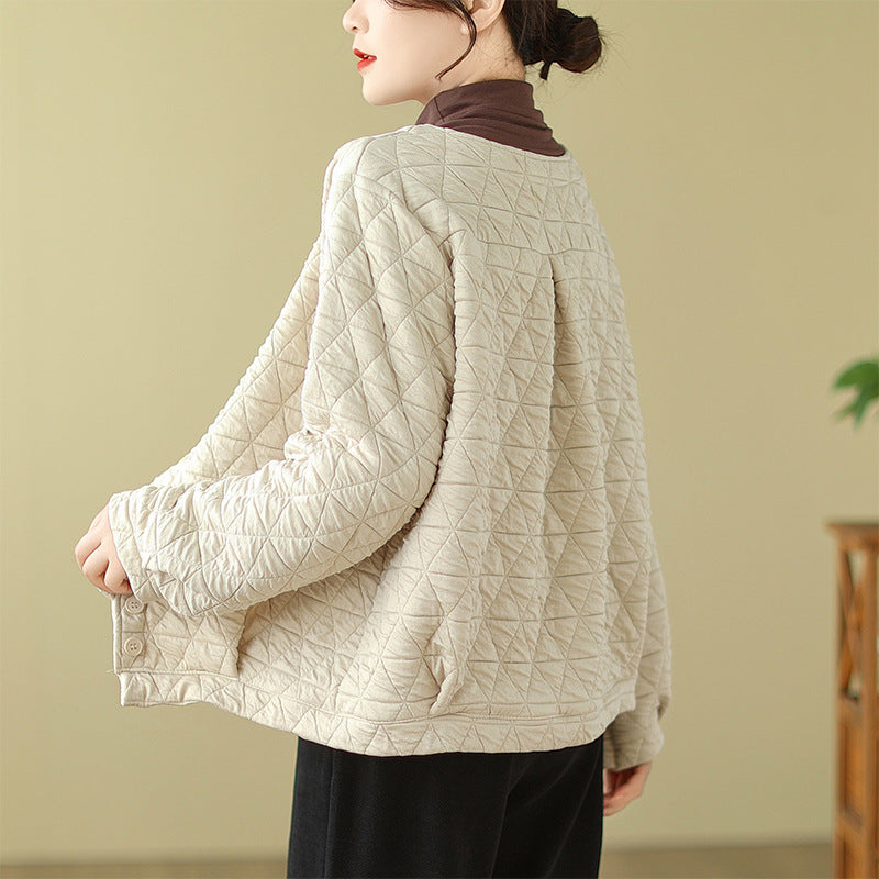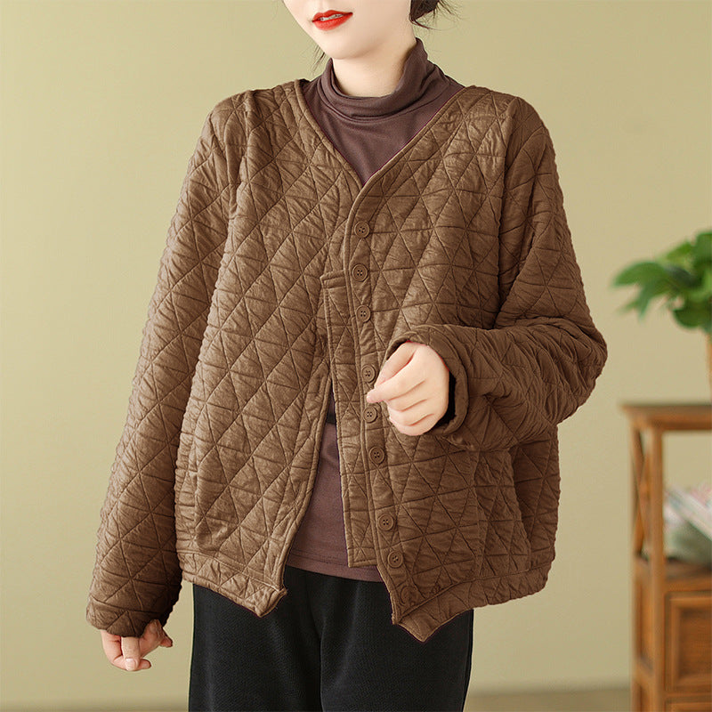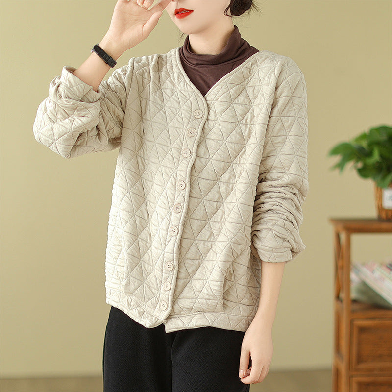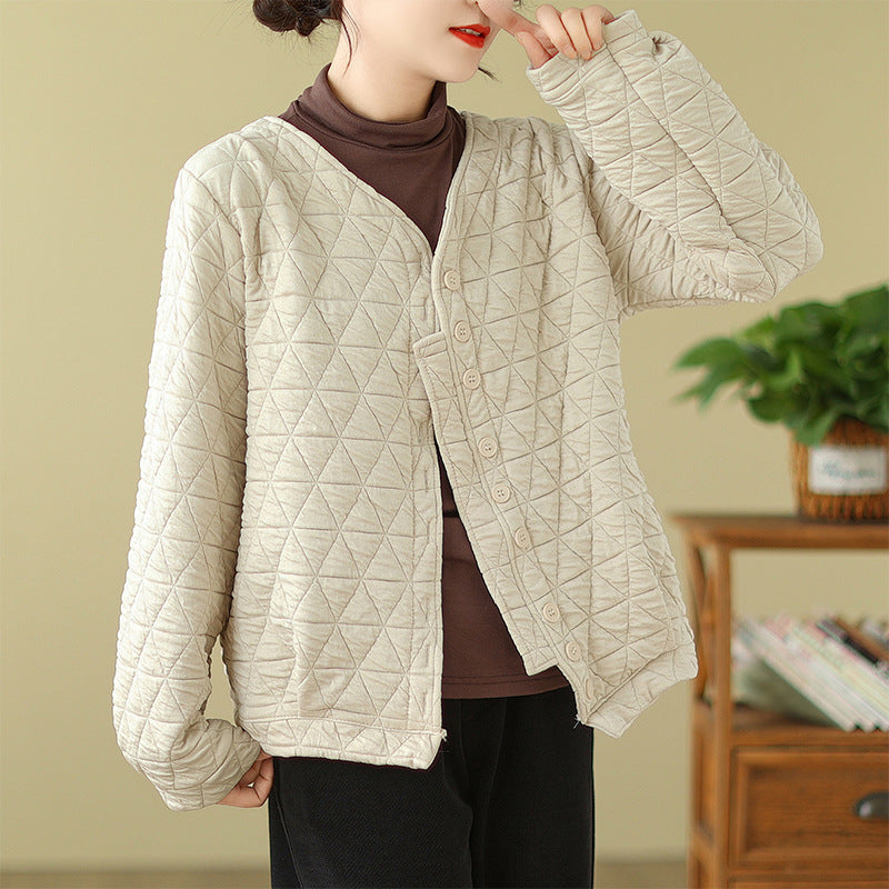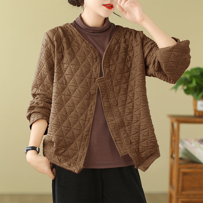 キルティング ジャケット 長袖 レディース vネック カジュアル 普段着 レトロ
