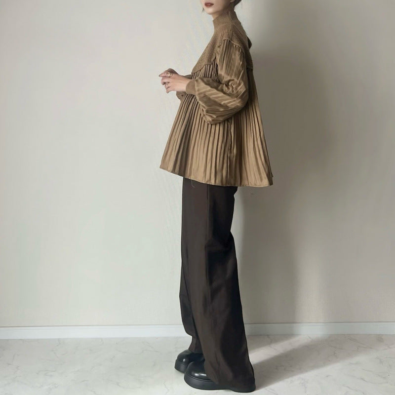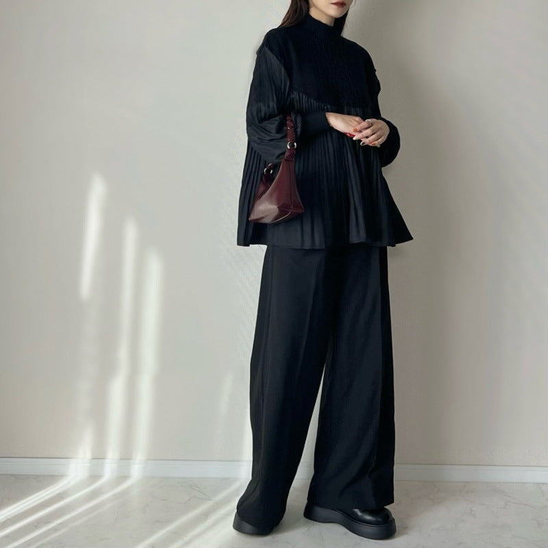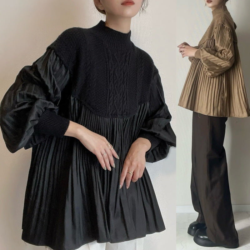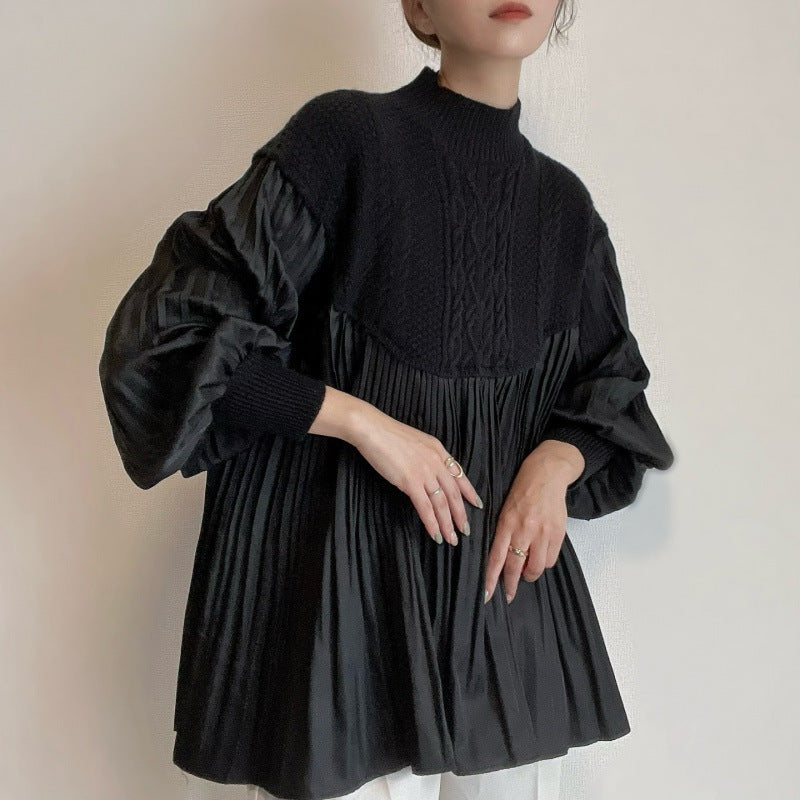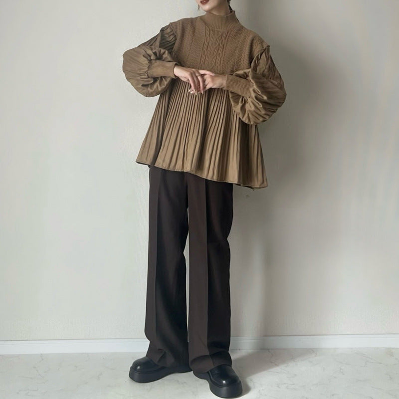 ケーブル編み ペプラムプルオーバー セーター 立体感 プリーツ 細部デザイン