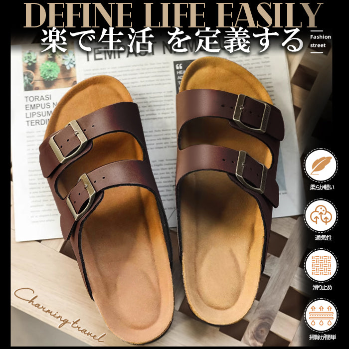 コルクサンダルレザースリッパ レザーサンダル カップルサンダル カップルスリッパ