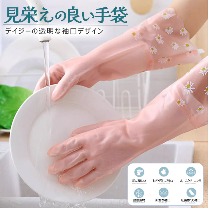 ゴム手袋 ロング キッチン 3双セット 裏起毛 かわいい 繰り返し使用 ロングスリーブ
