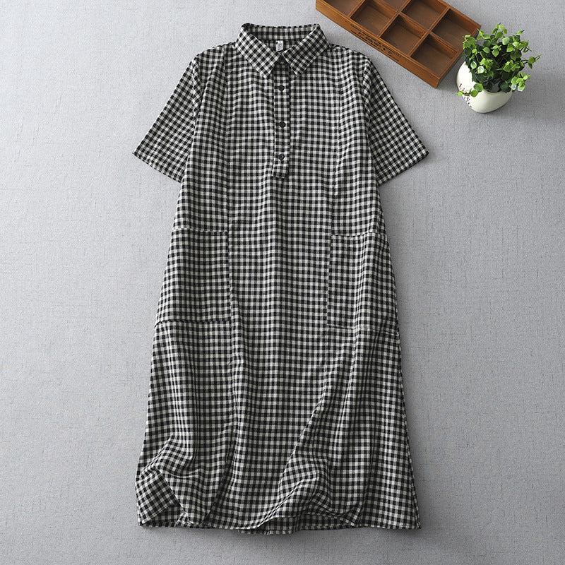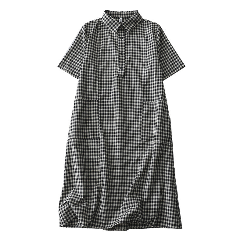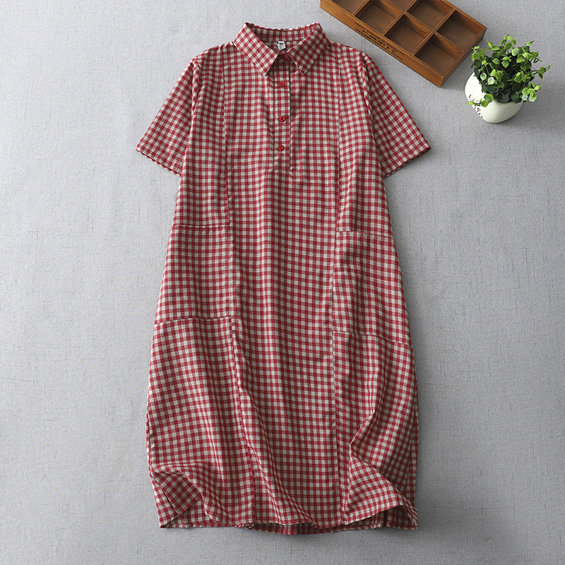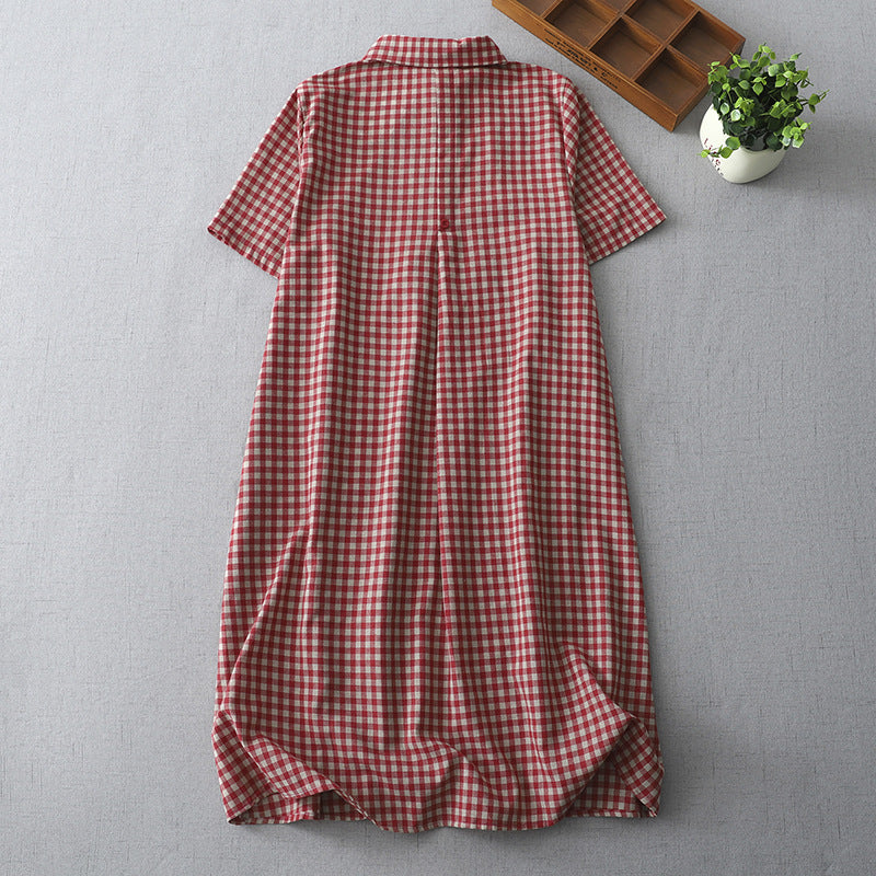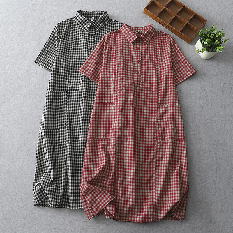 シャツワンピース ワンピース レディース 夏 チェック柄 スレンダーライン コットンワンピ
