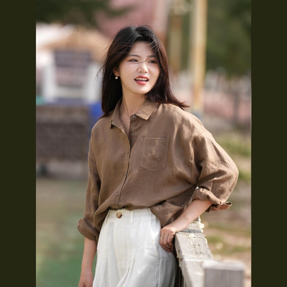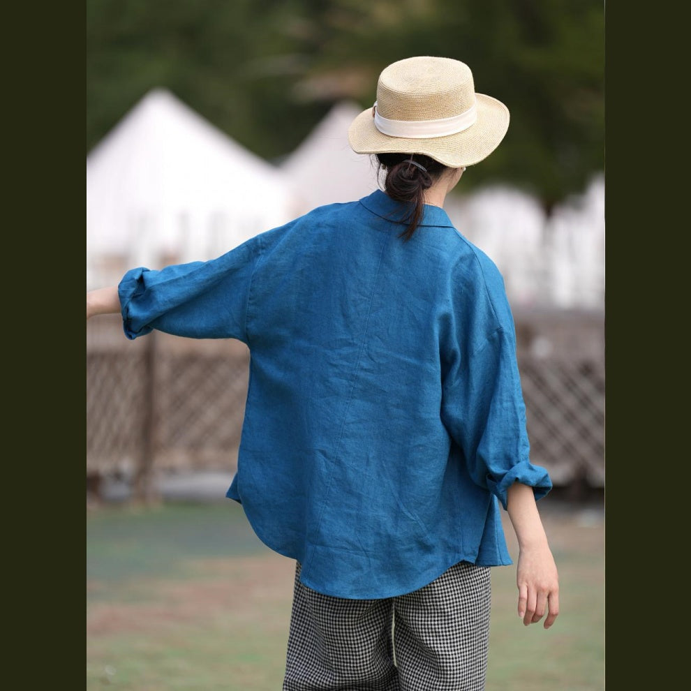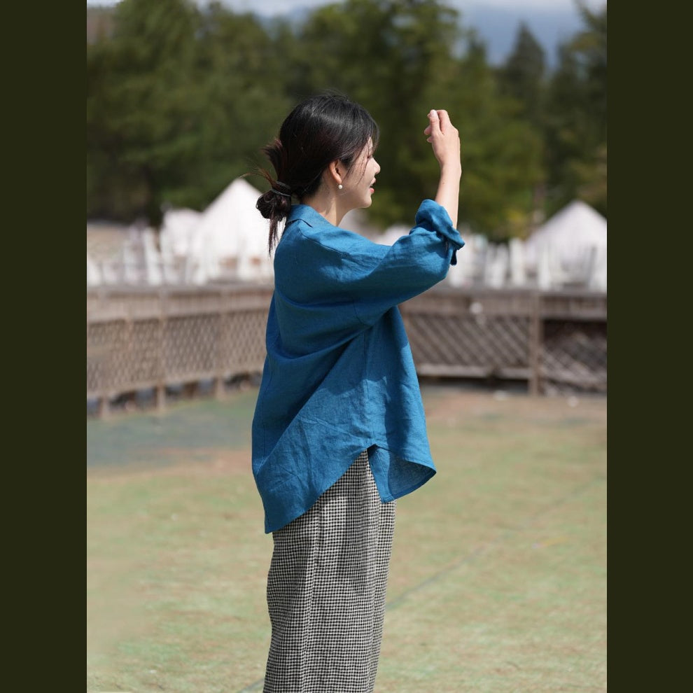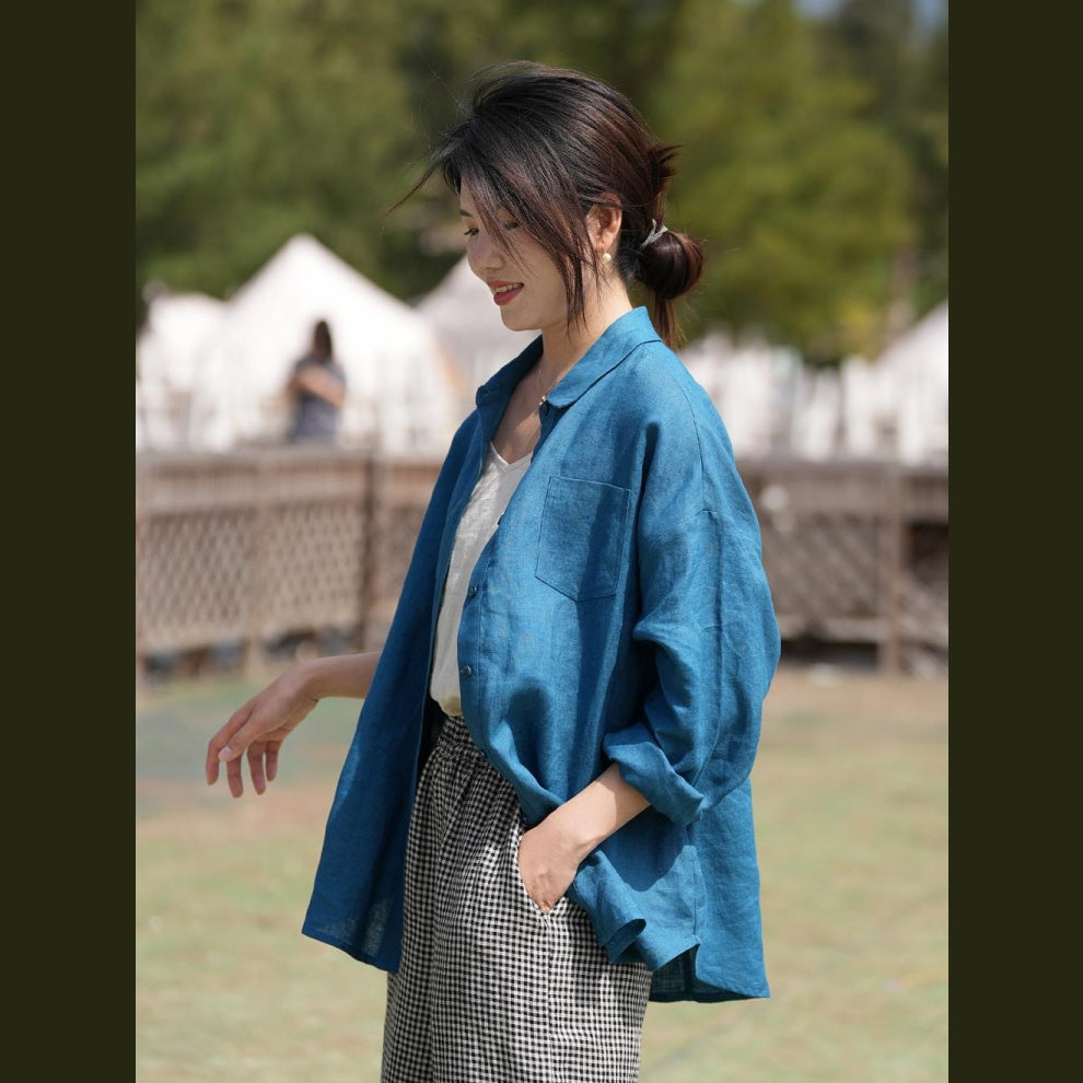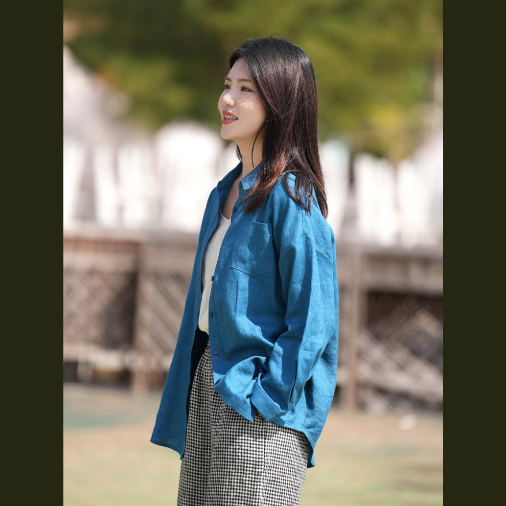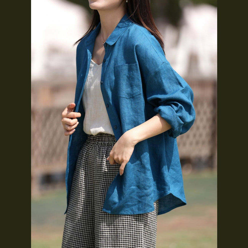 シャツ コーデュロイ レディース 長袖 ライトアウター 中長丈 羽織り ブルー