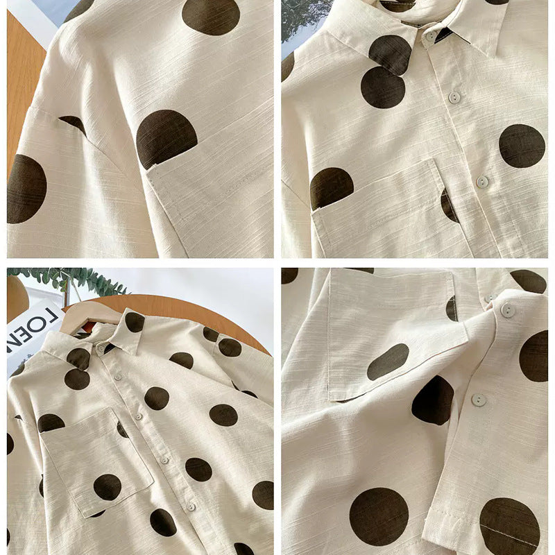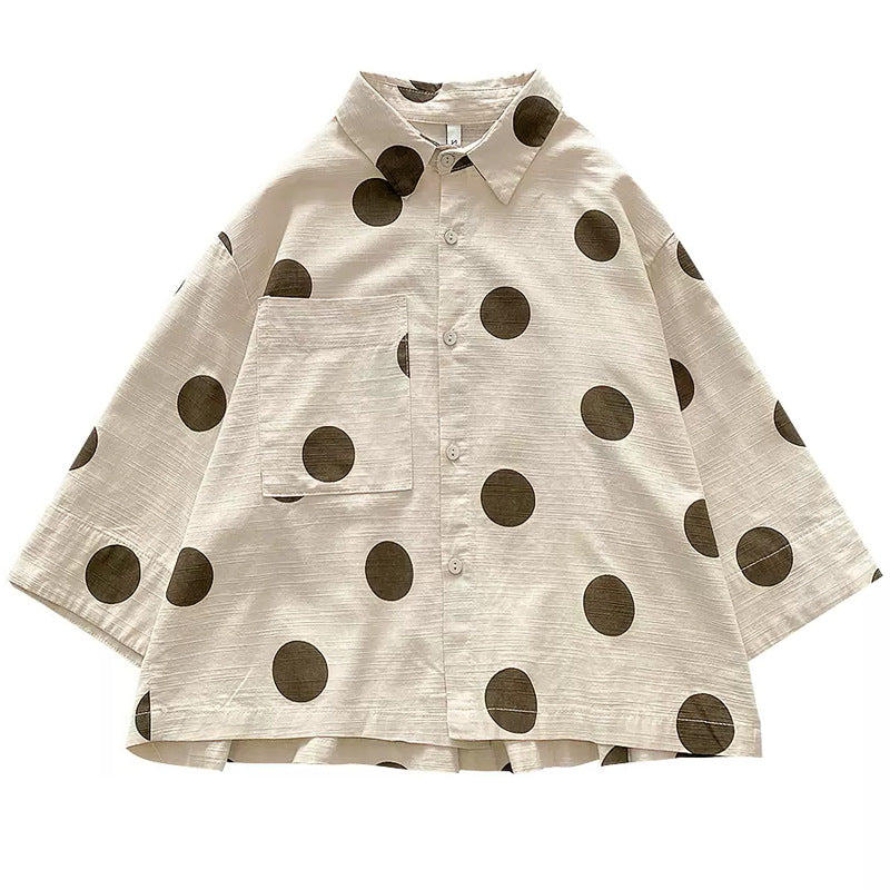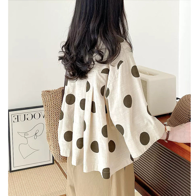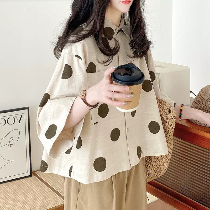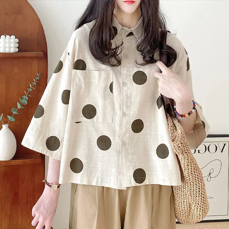 シャツ ブラウス レディース トップス ドット柄 水玉模様 コットンリネン 棉麻 ゆったり