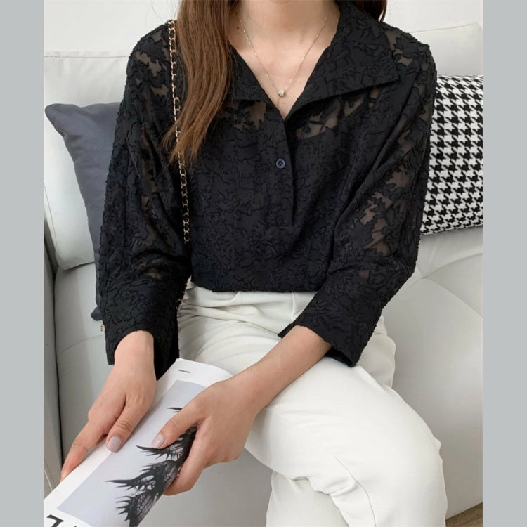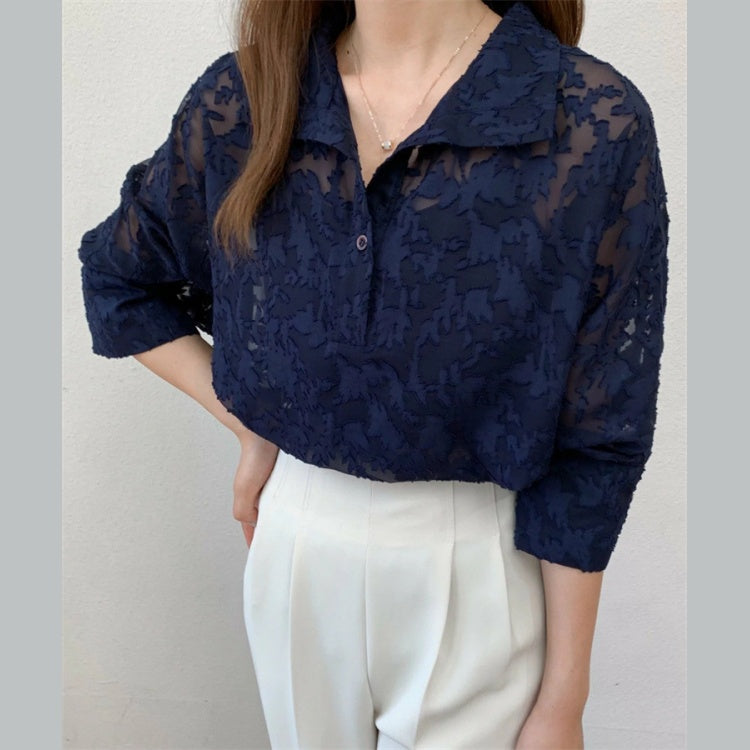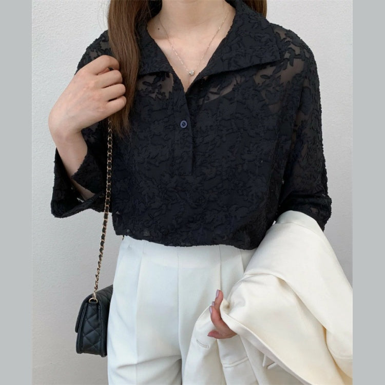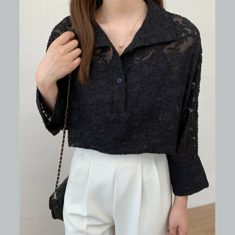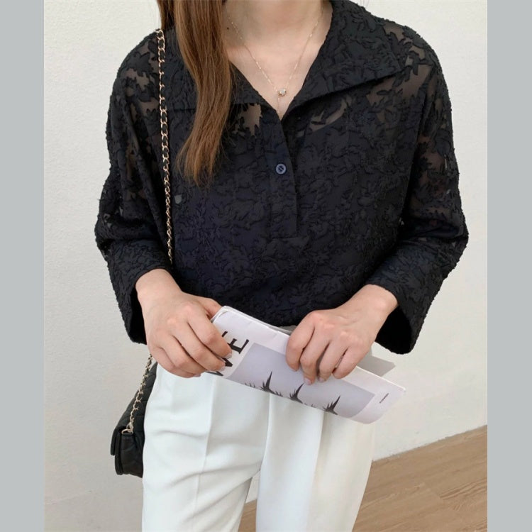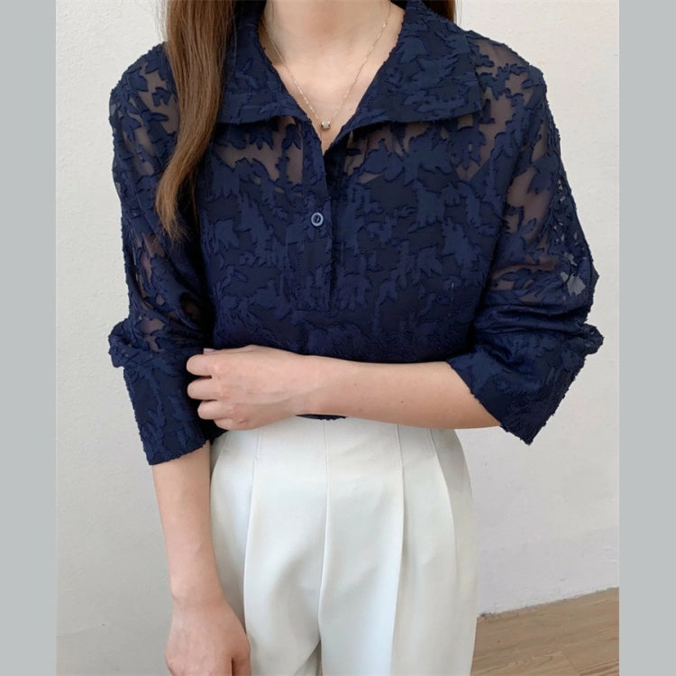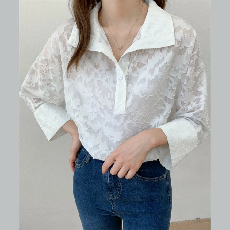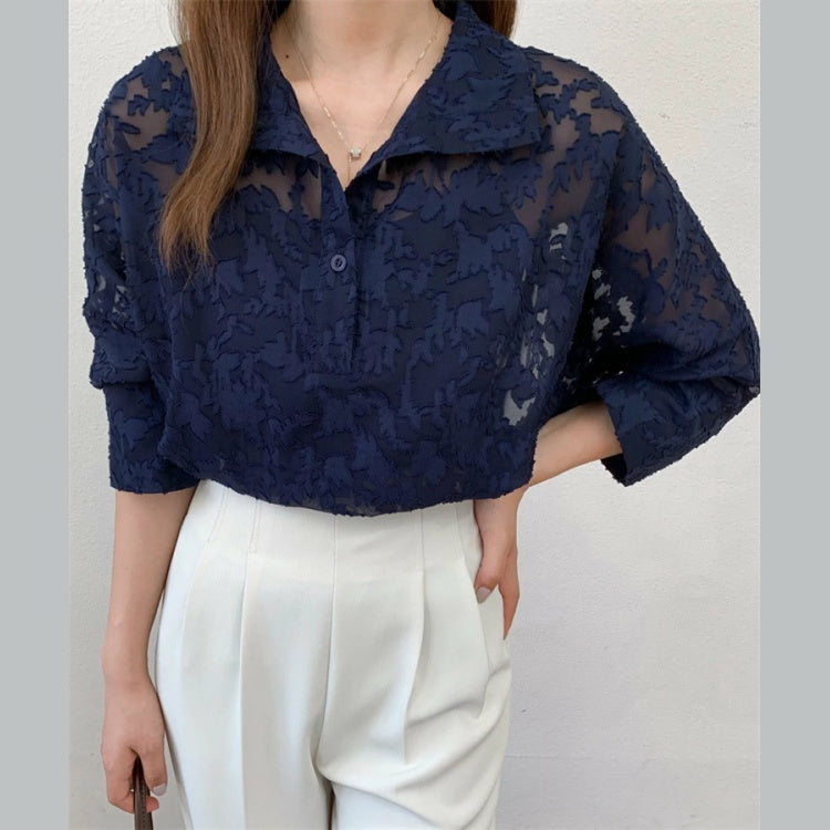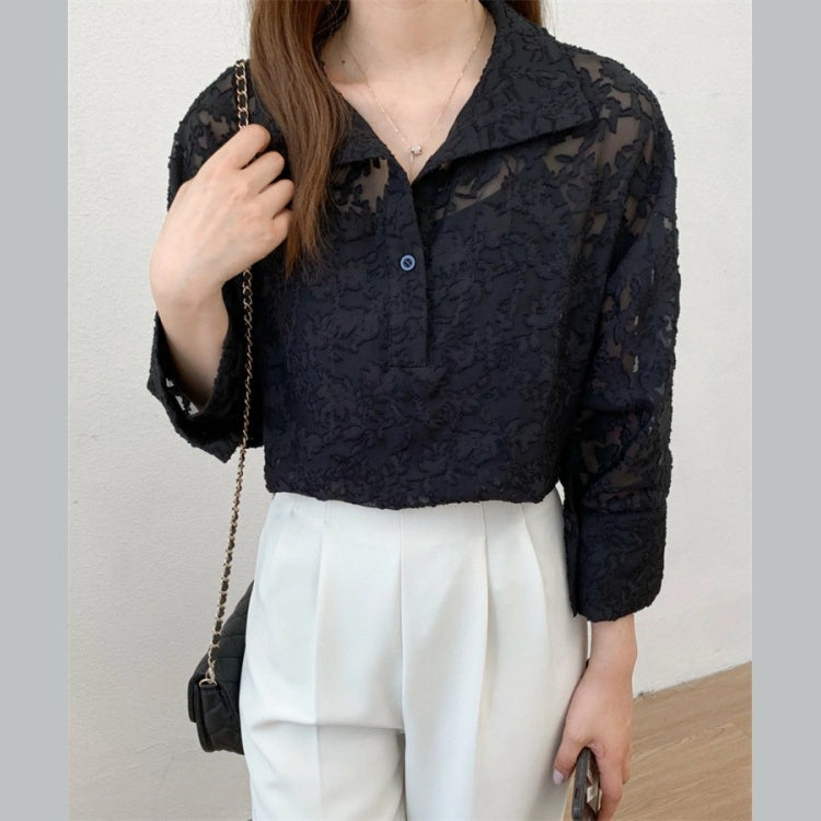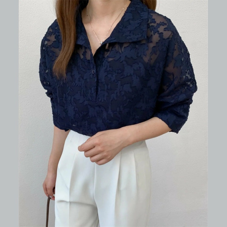 シャツ ブラウス レディース トップス 半袖 レース 透かし 柄 花柄 韓国風