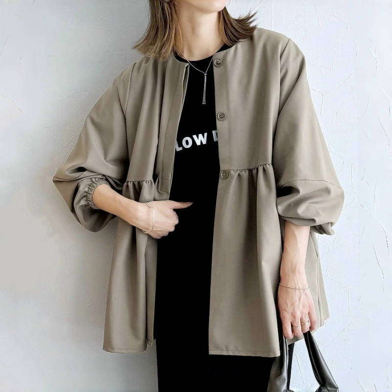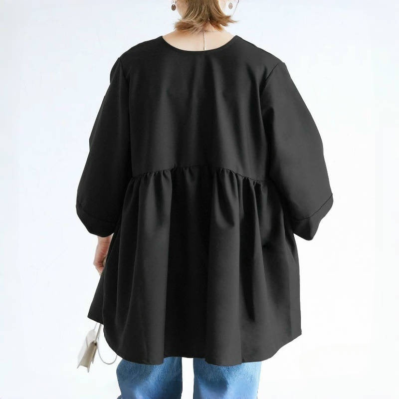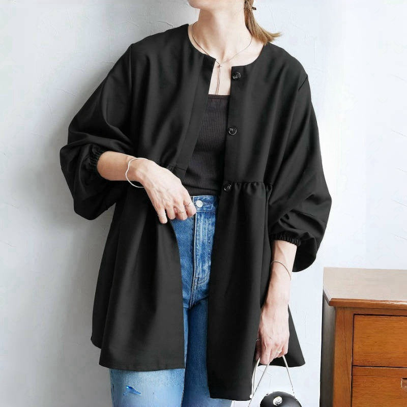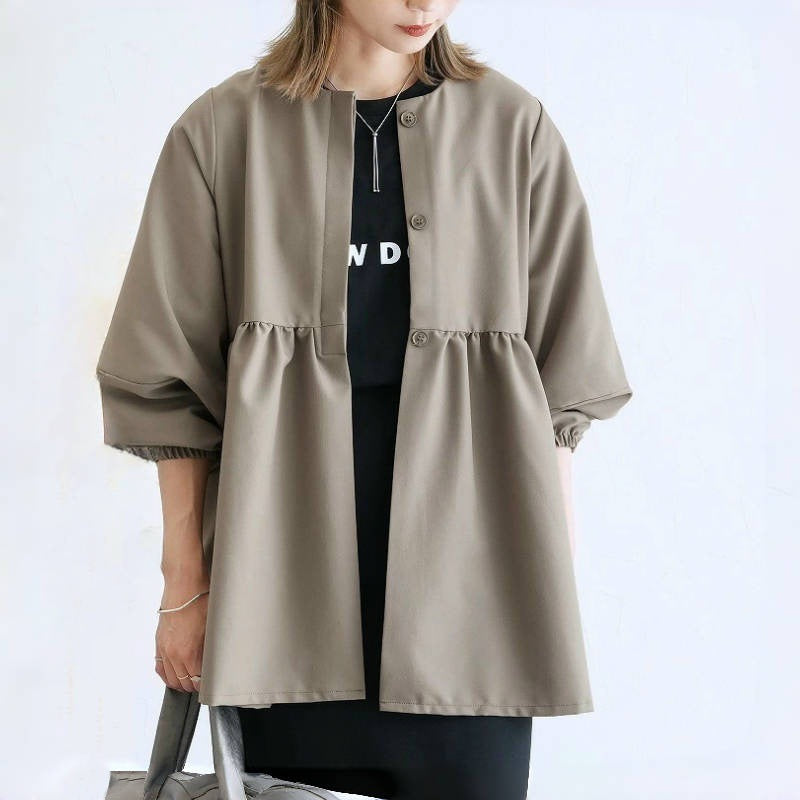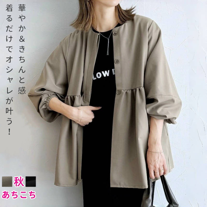 シャツ プリーツ ブラウス レディース 長袖 コットン スタンダードカラー トップス