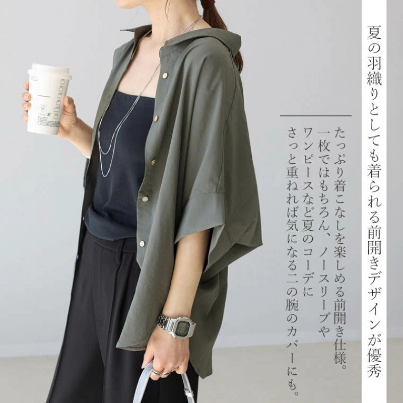 シャツ レディース バットスリーブシャツ ゆったり トップス 羽織り 体型カバー
