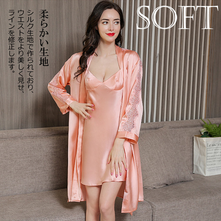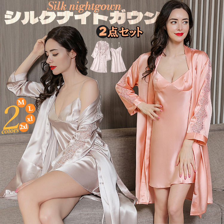 シルクバスローブ シルクナイトガウン シルクパジャマシルクランジェリー ローブ