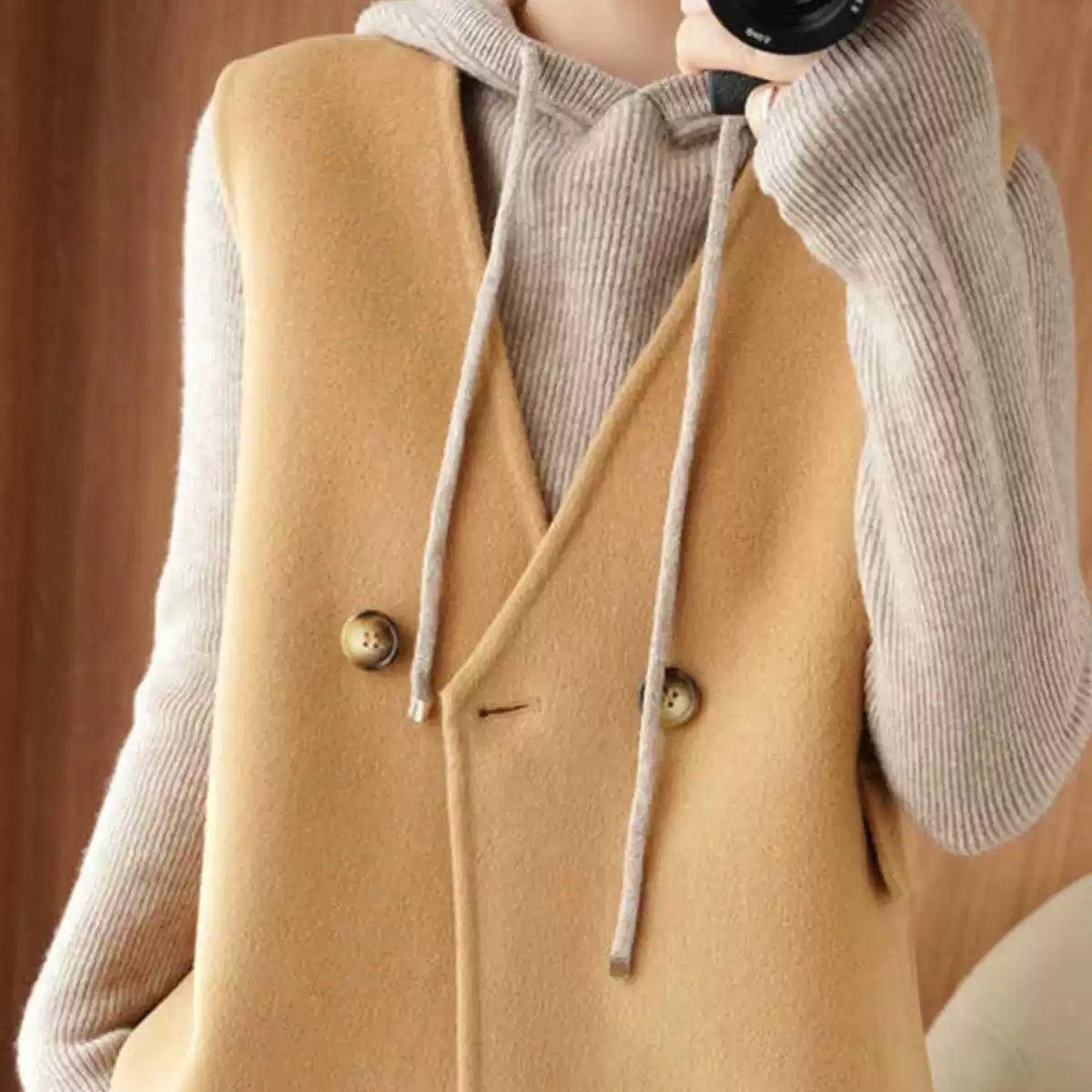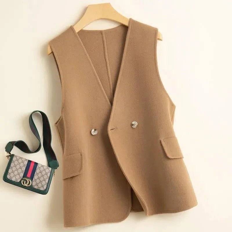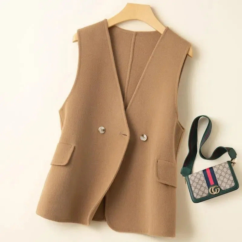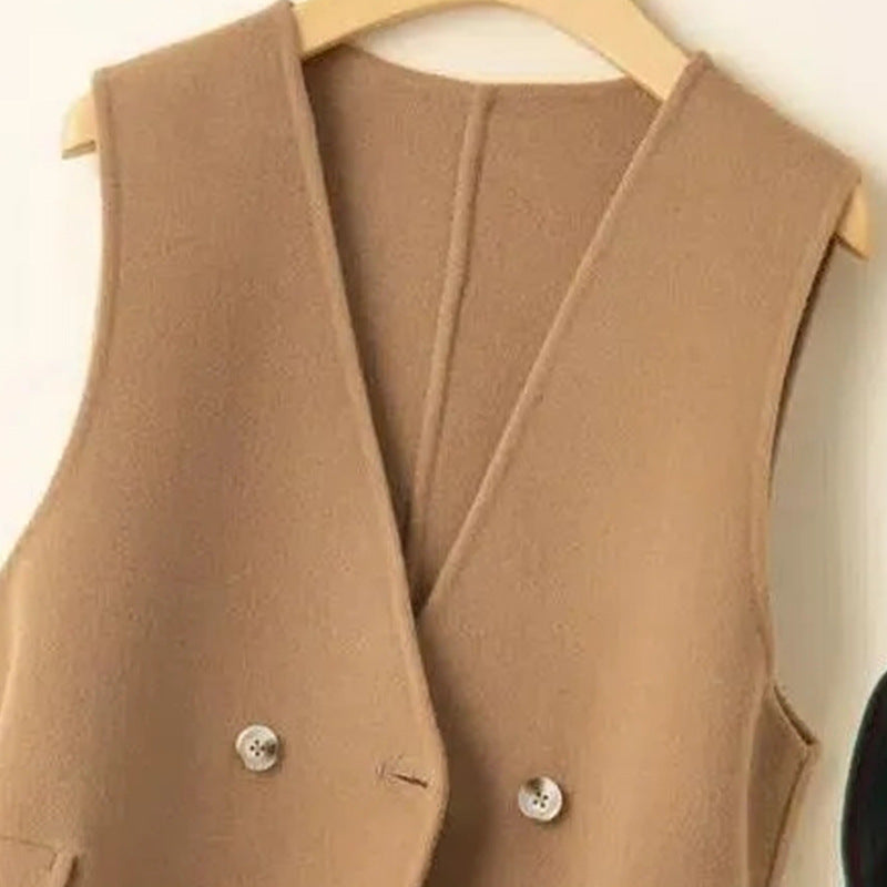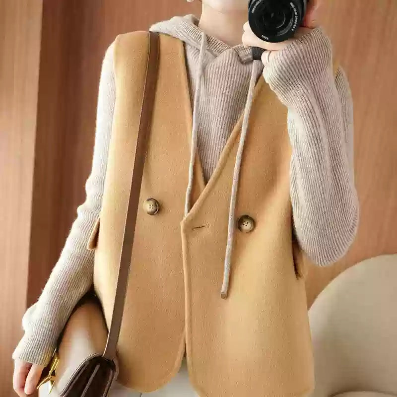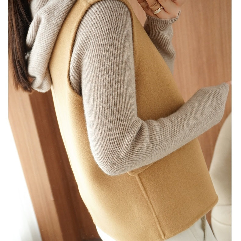 ジレ ベスト ウール レディース ウエストマーク ロングベスト ノーカラー レイヤードコーデ