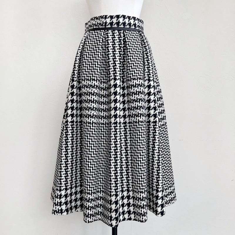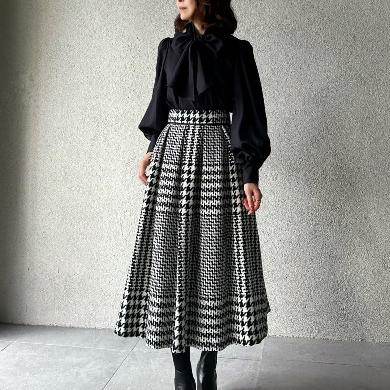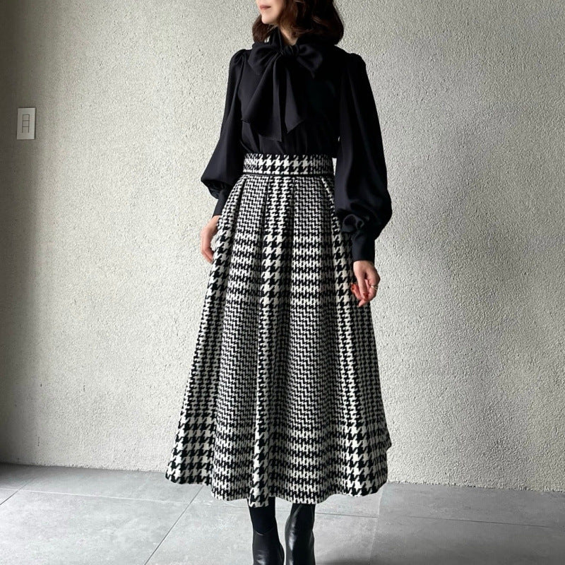スカート 千鳥格子 レディース 春 秋 冬 ロング プリーツ フレア ニット 柄