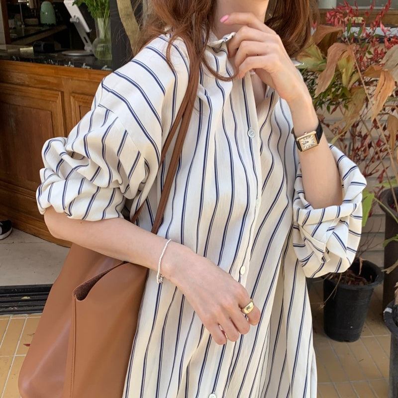 ストライプシャツ ブラウス ワンピース トップス レディース オーバーシャツ
