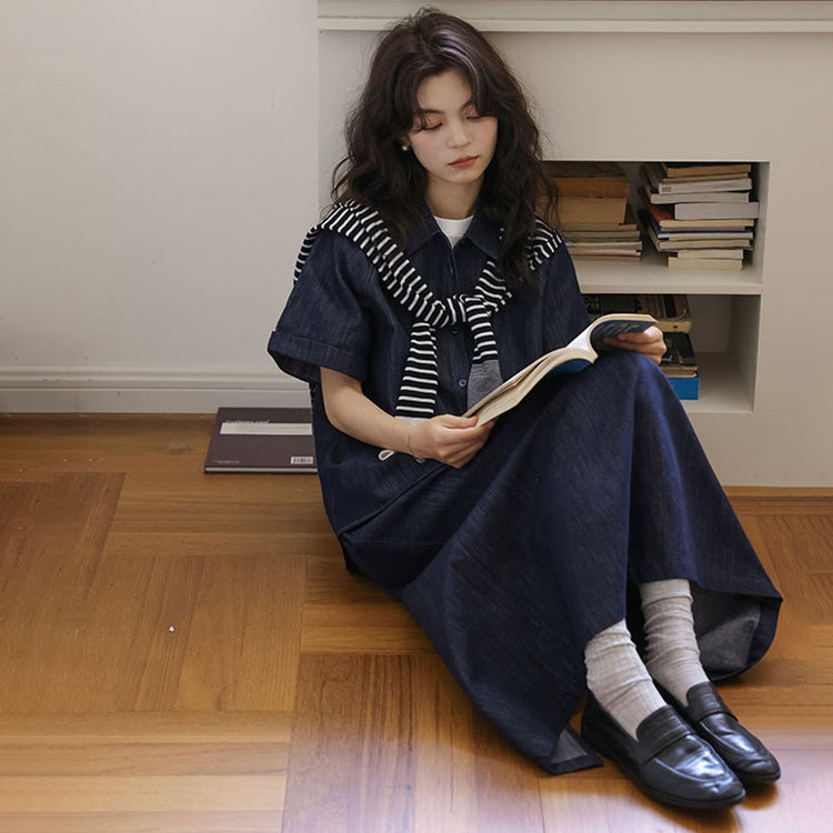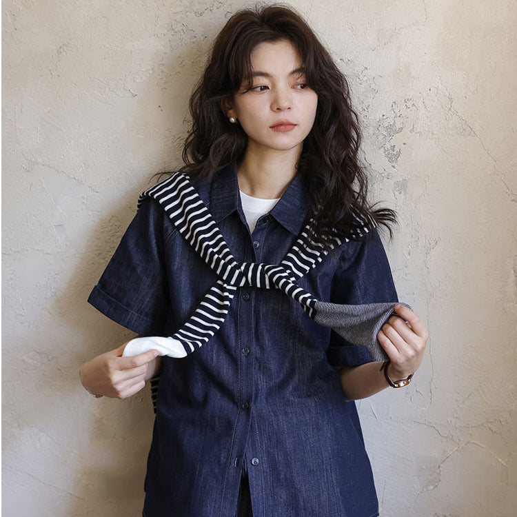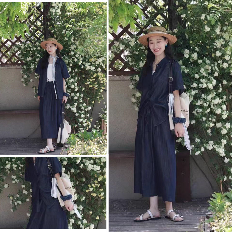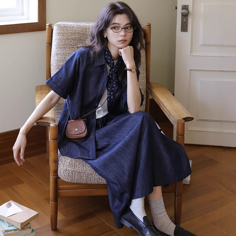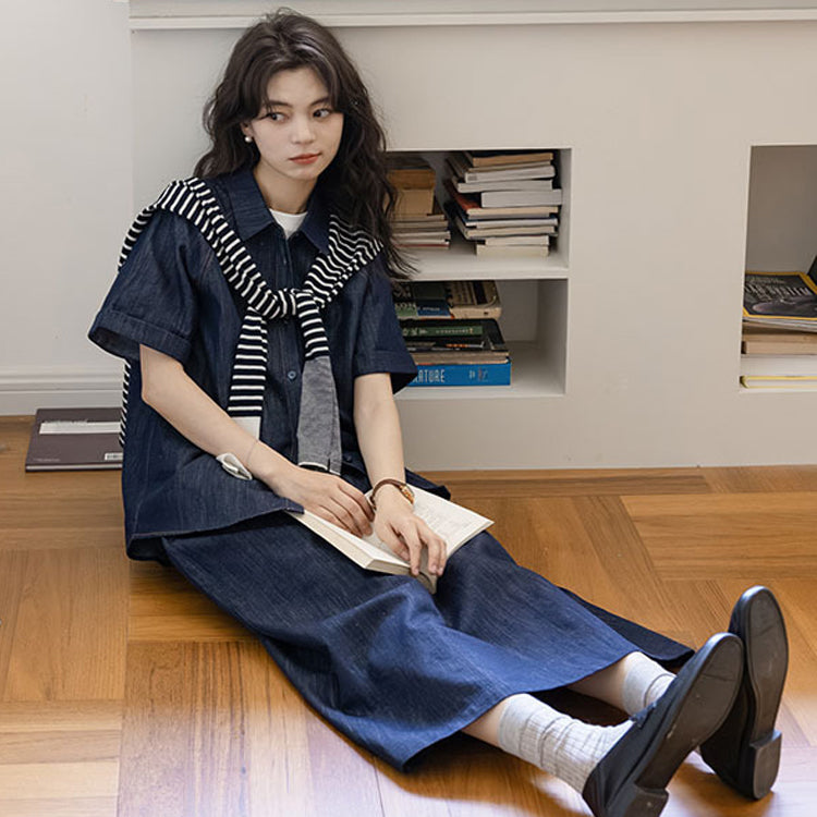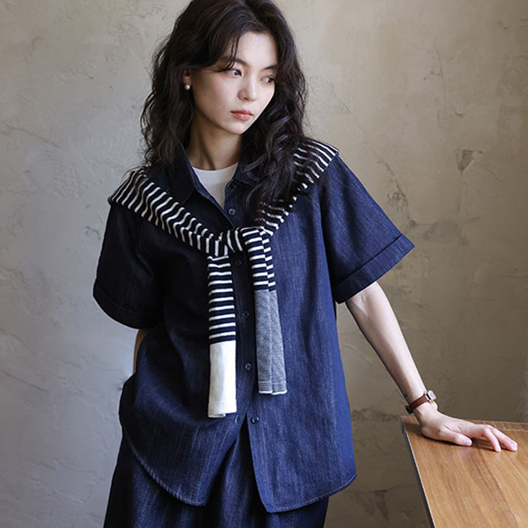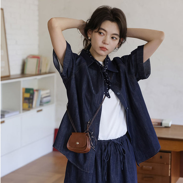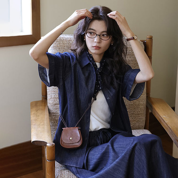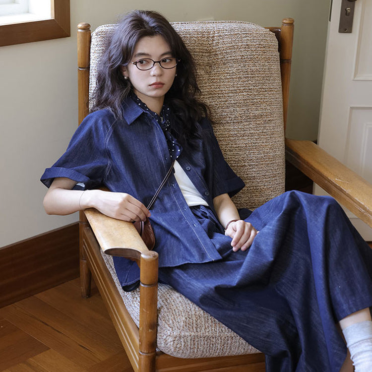 セットアップ レディース デニムシャツ 半袖 トップス デニムスカート 上下セット 夏 秋