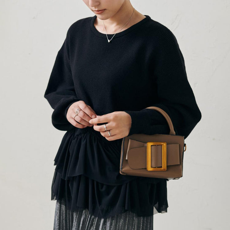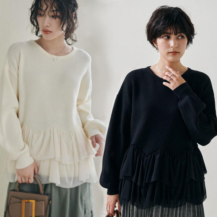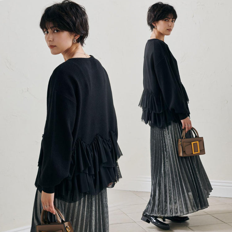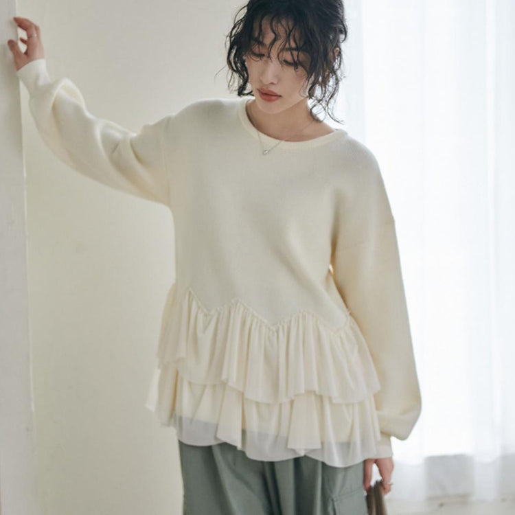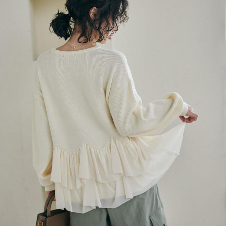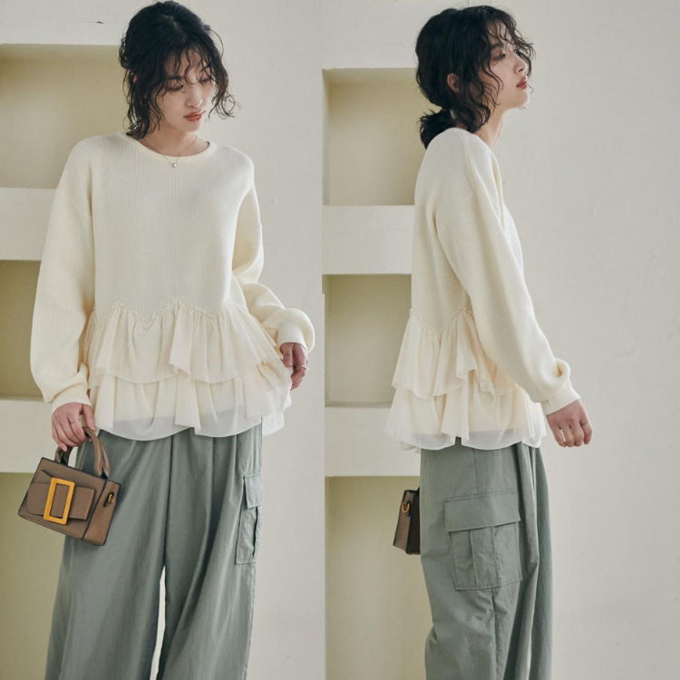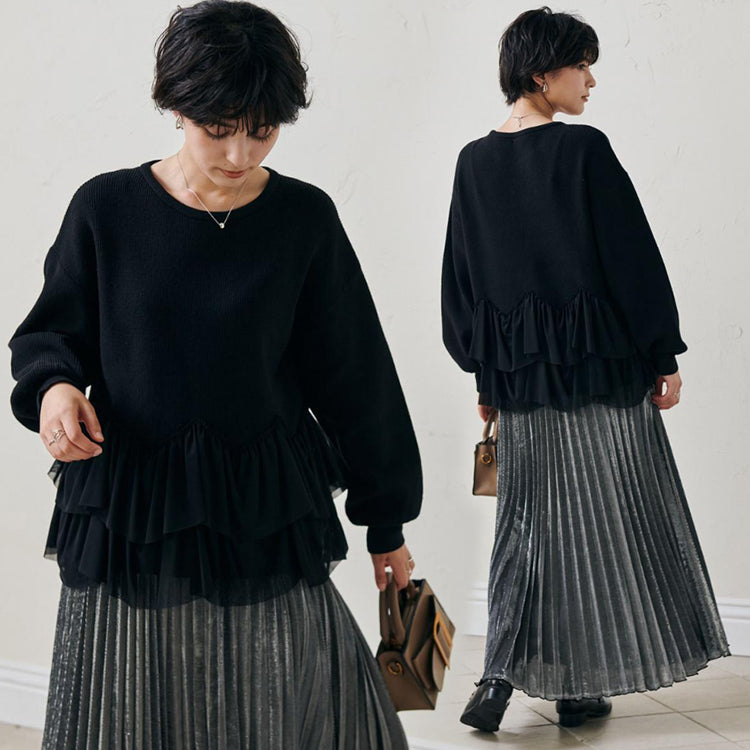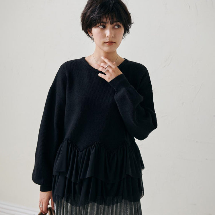 セーター トップス ペプラム 長袖 フリル ぽわん袖 ペプラムプルオーバー