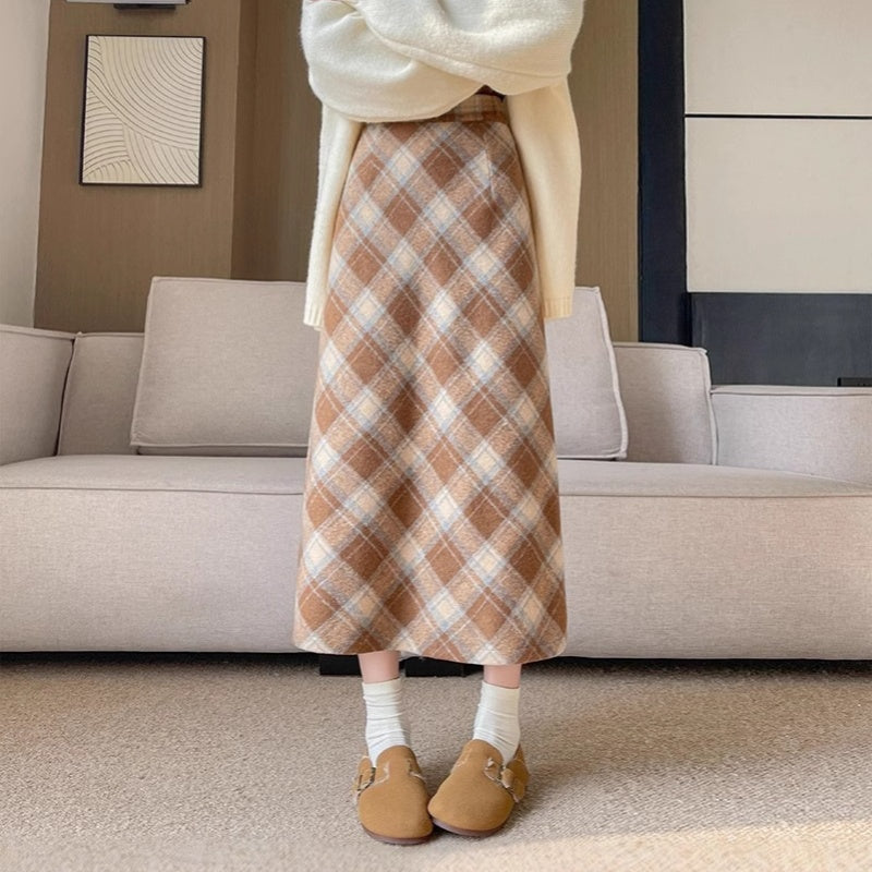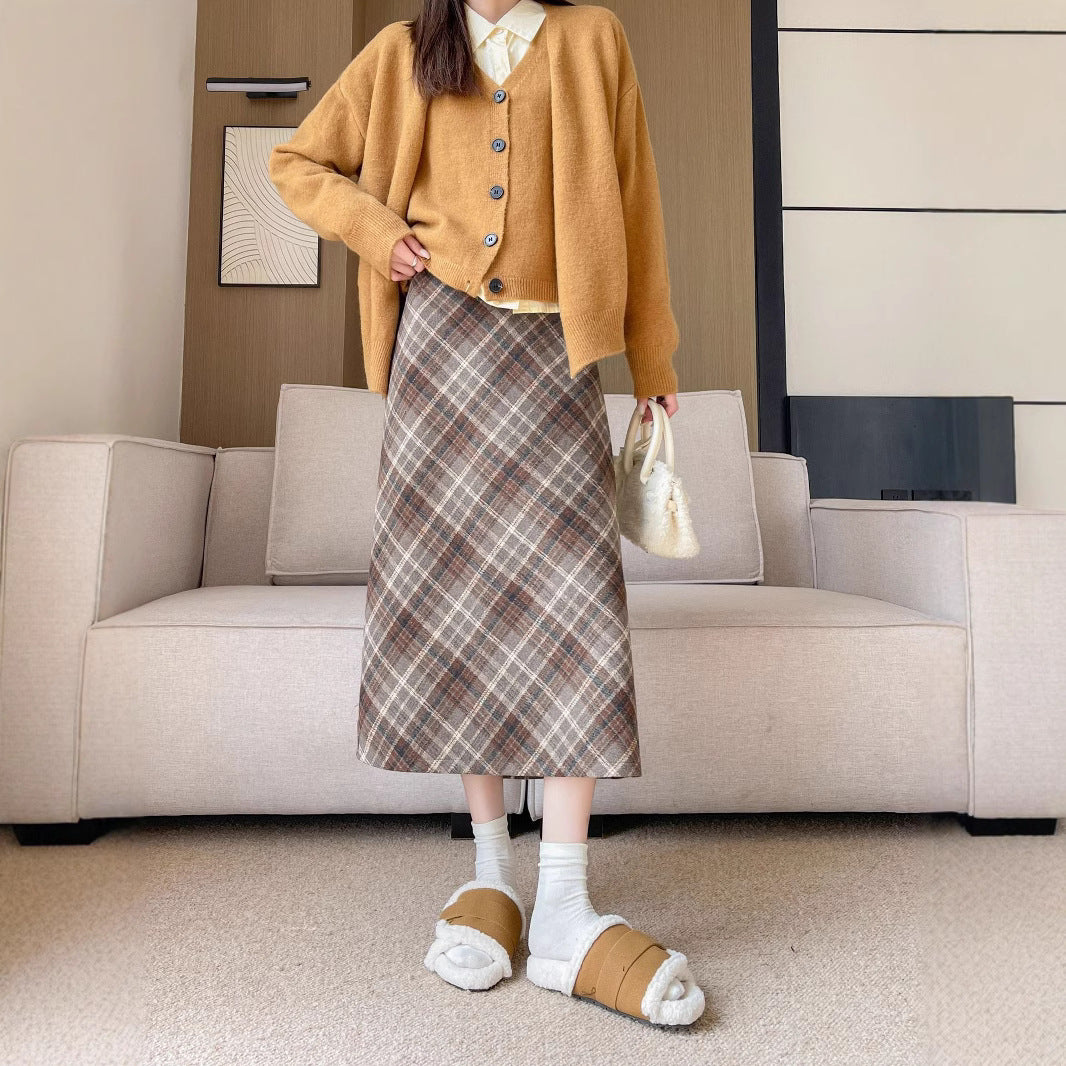タイトスカート チェックスカート フレアロングスカート 裏起毛スカート ロングスカートの数量を増やす