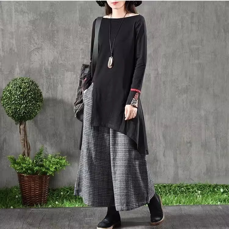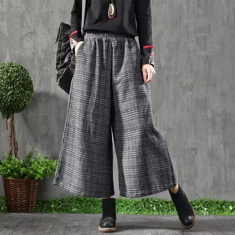 チェッカーフラッグ チェック ワイドパンツ 八分丈 レディース ダンス ストレートパンツ