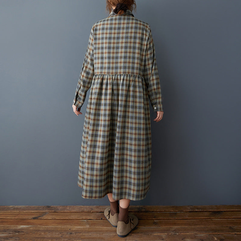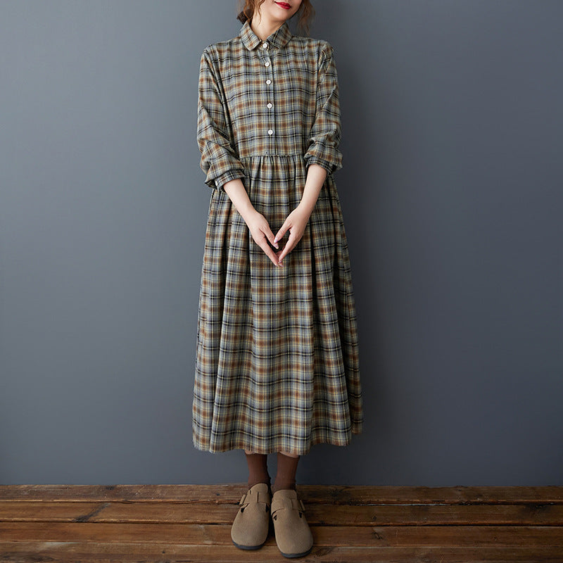 チェック ワンピース レディース ネルシャツ コットン リネン素材 ロング丈