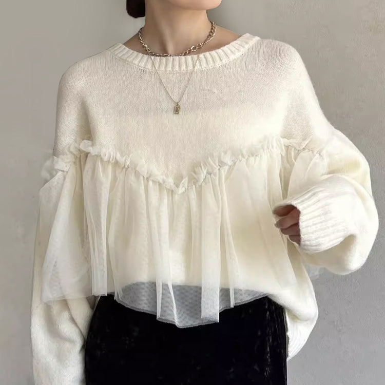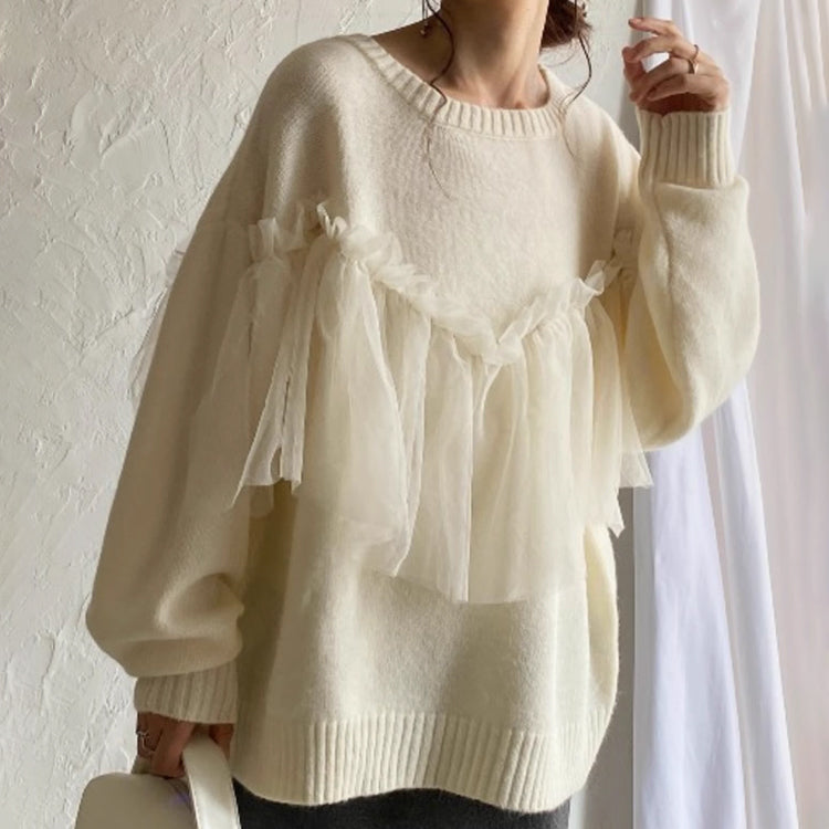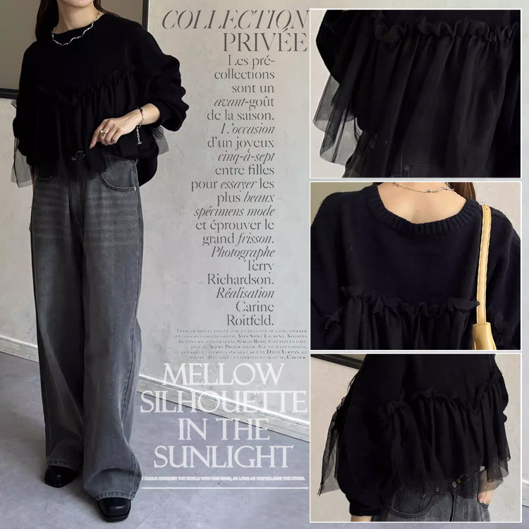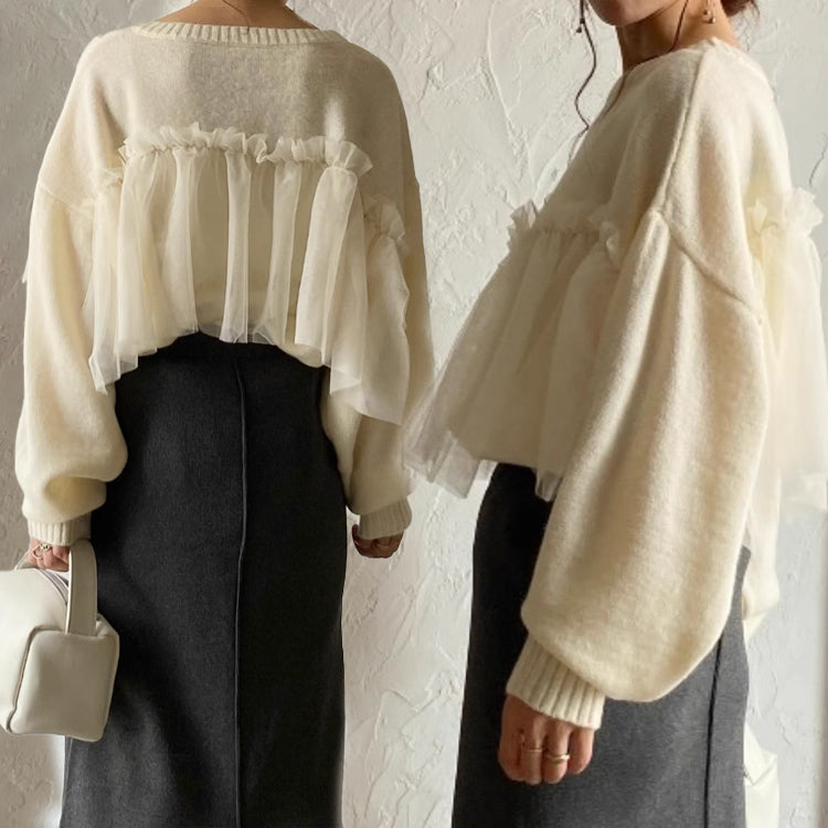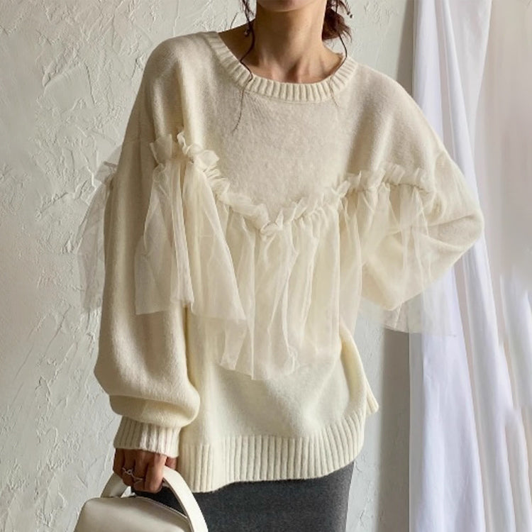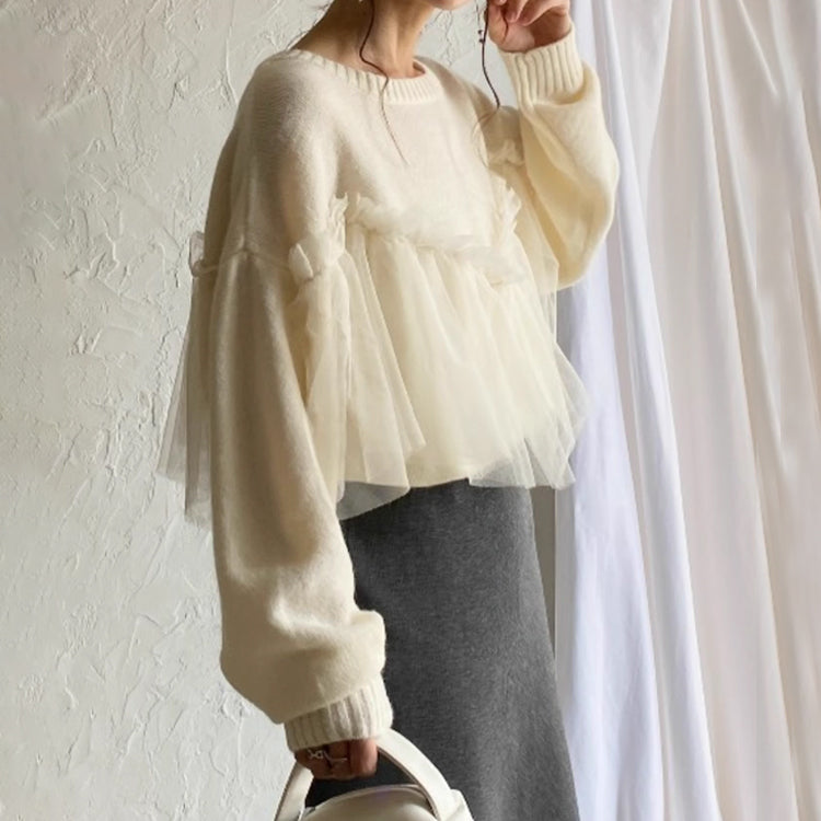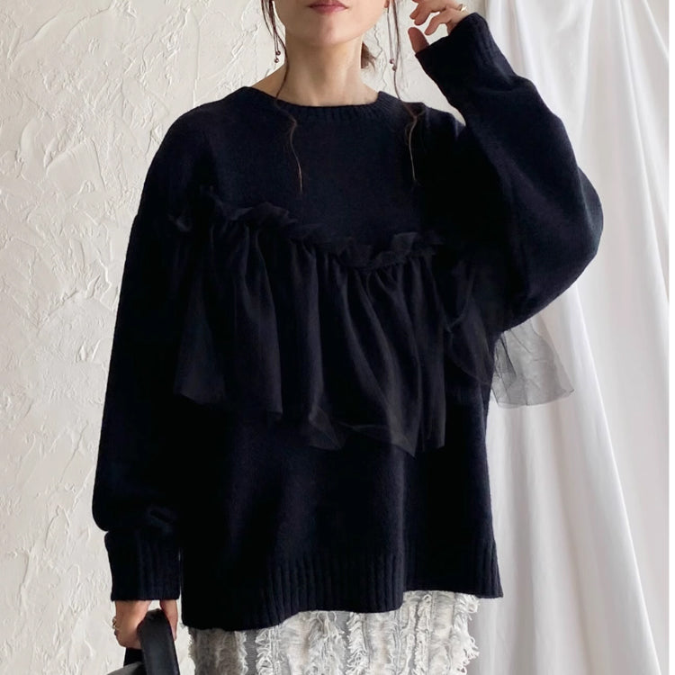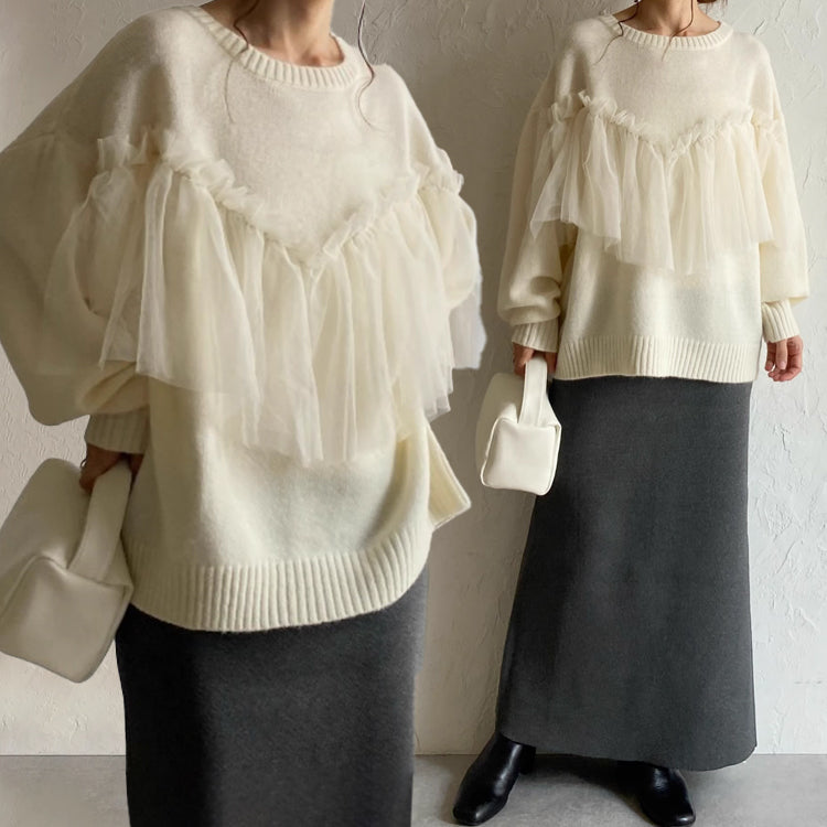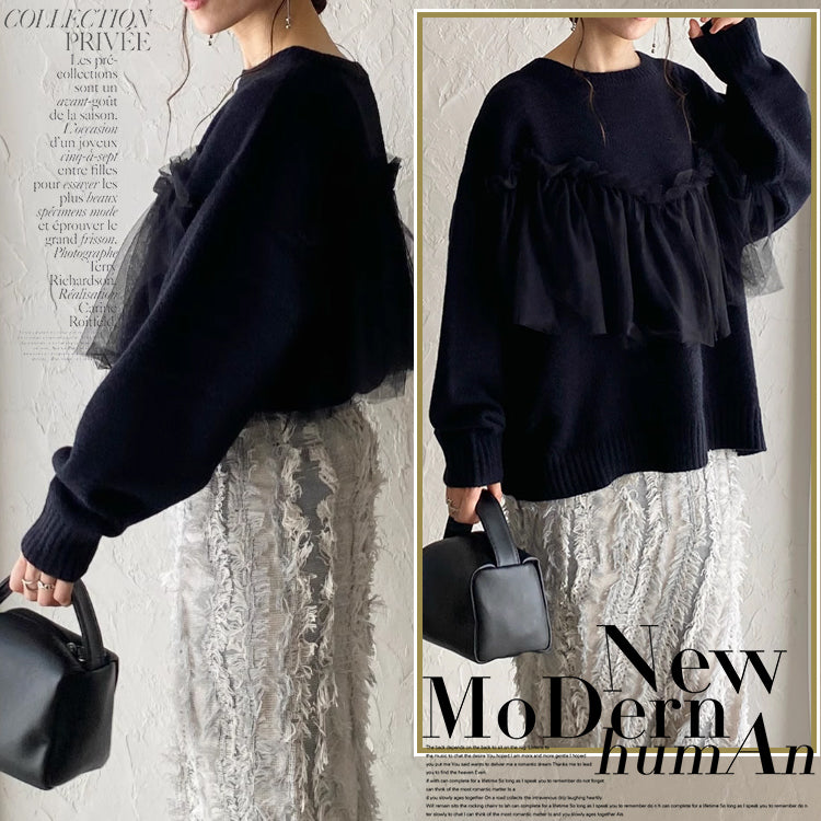 チュールドッキングニット クルーネックニット ニット セーター トップス レディース