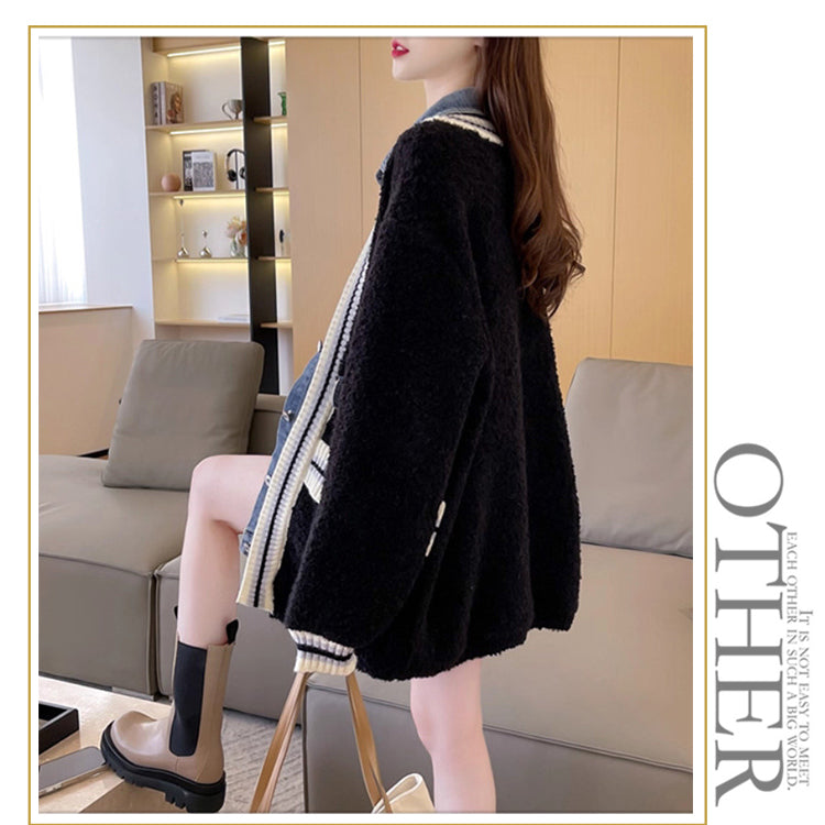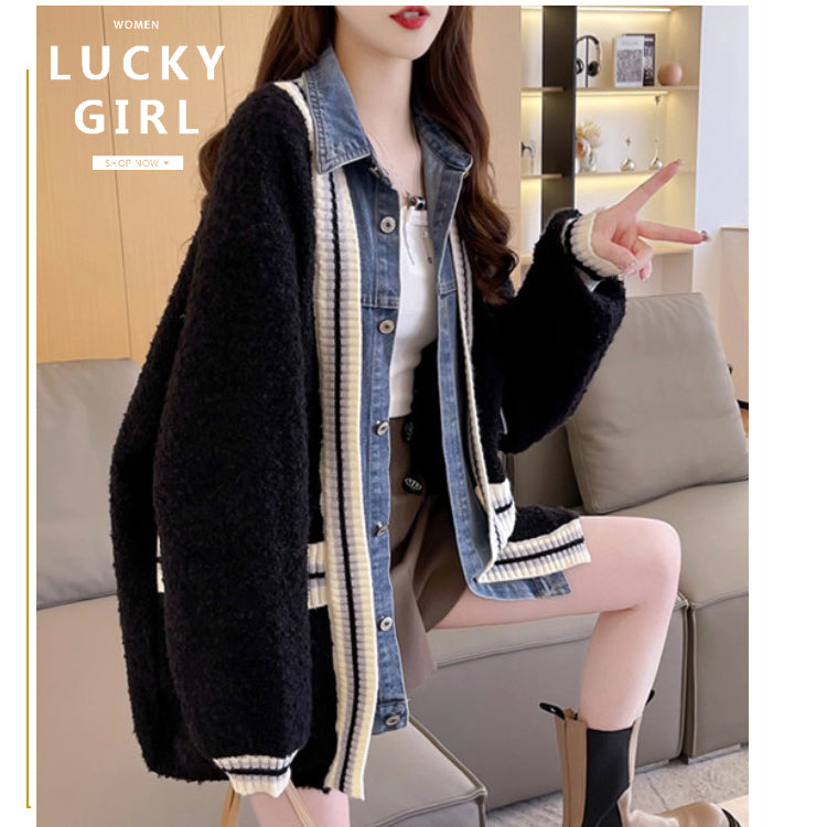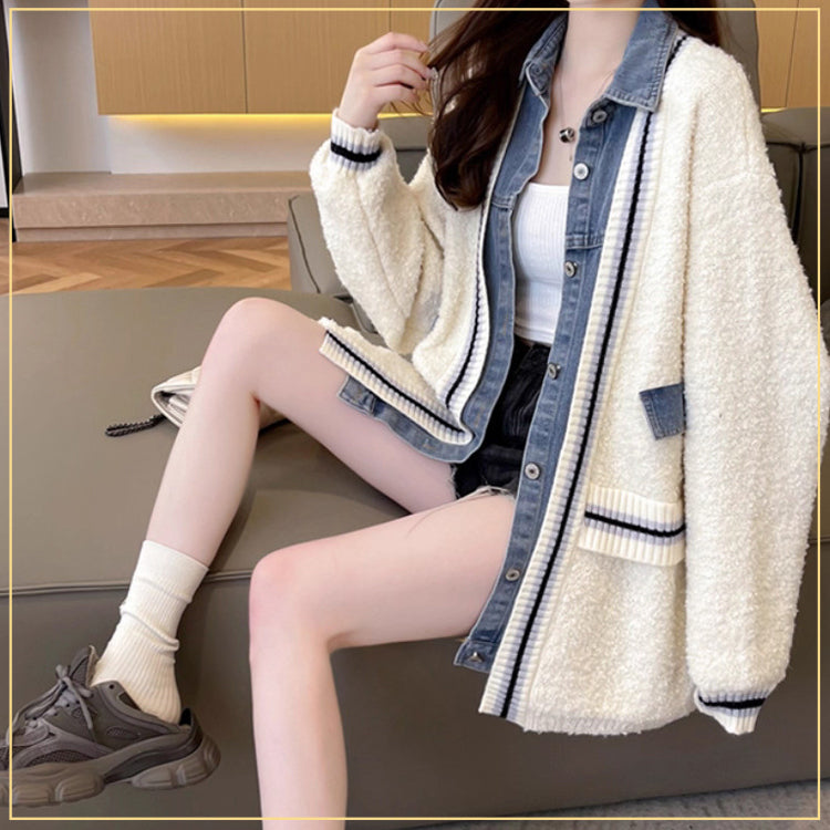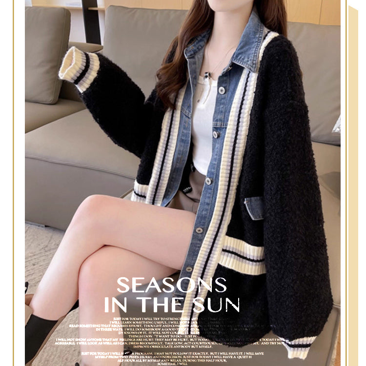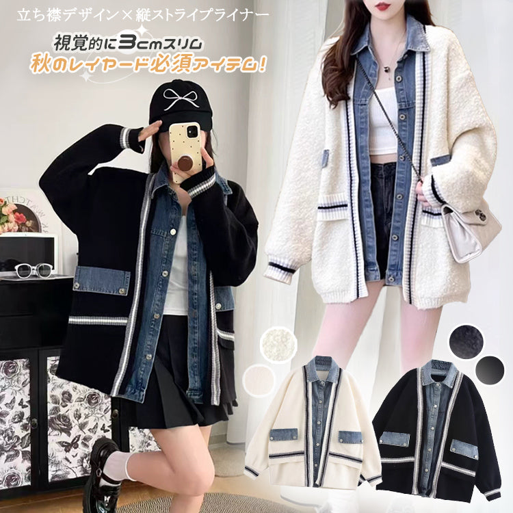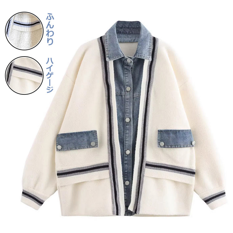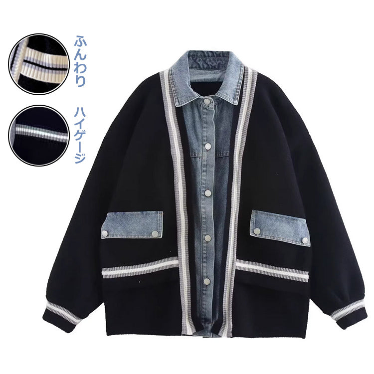 デニム切り替えニットジャケット ニットカーディガン ニットジャケット デニムジャケット