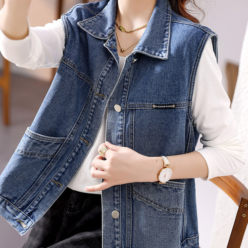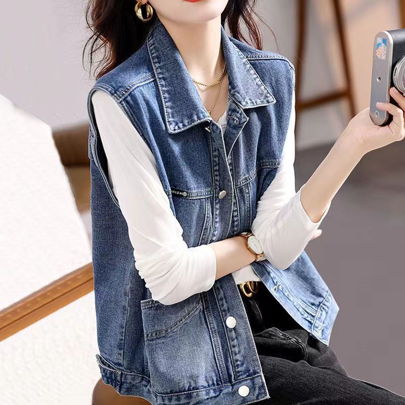 デニム ノースリーブ レディース 春秋 前開き 重ね着 アウター ジレ レイヤード