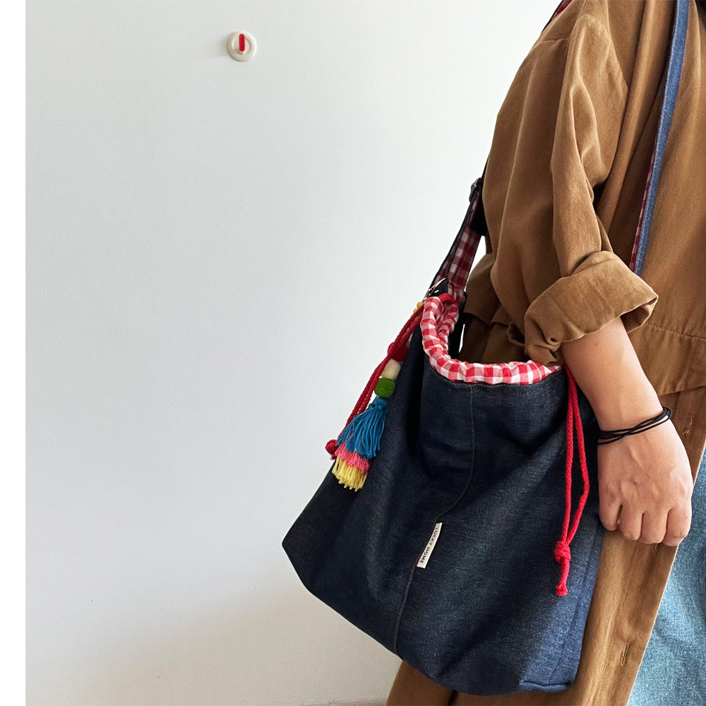 トートバッグ ショルダーバッグ 斜めがけバッグ レディース 大容量 巾着バッグ デニム