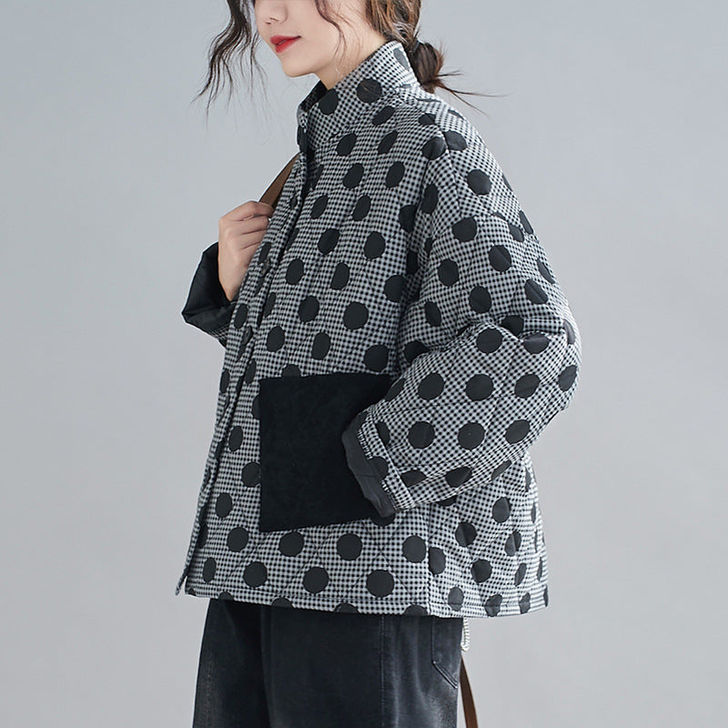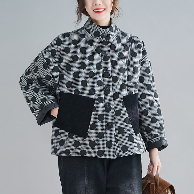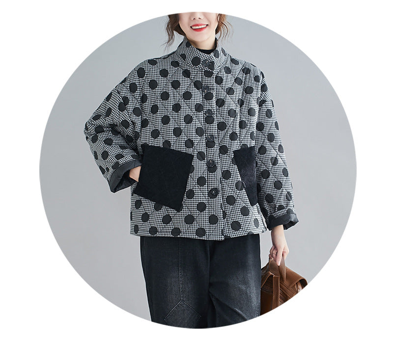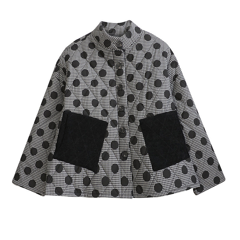 ドット柄ジャケット 長袖 レディース ラウンドネック カジュアル 普段着 レトロ 女性 ボタン