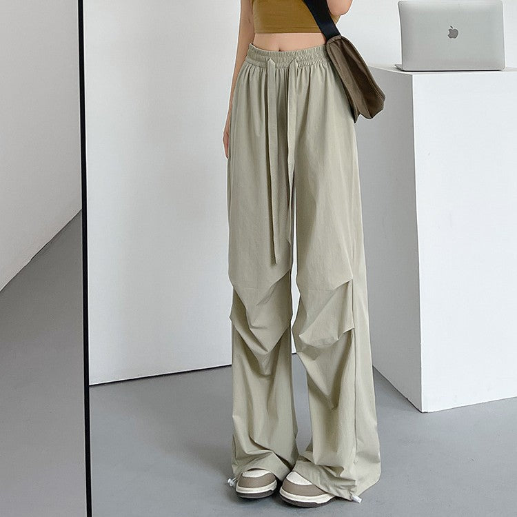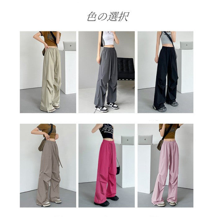 ドロストカーゴパンツ ボトムス 裾ドローコード レディース ハイウエスト 速乾生地