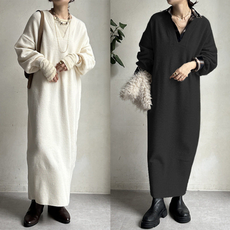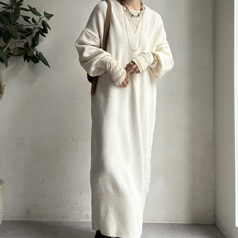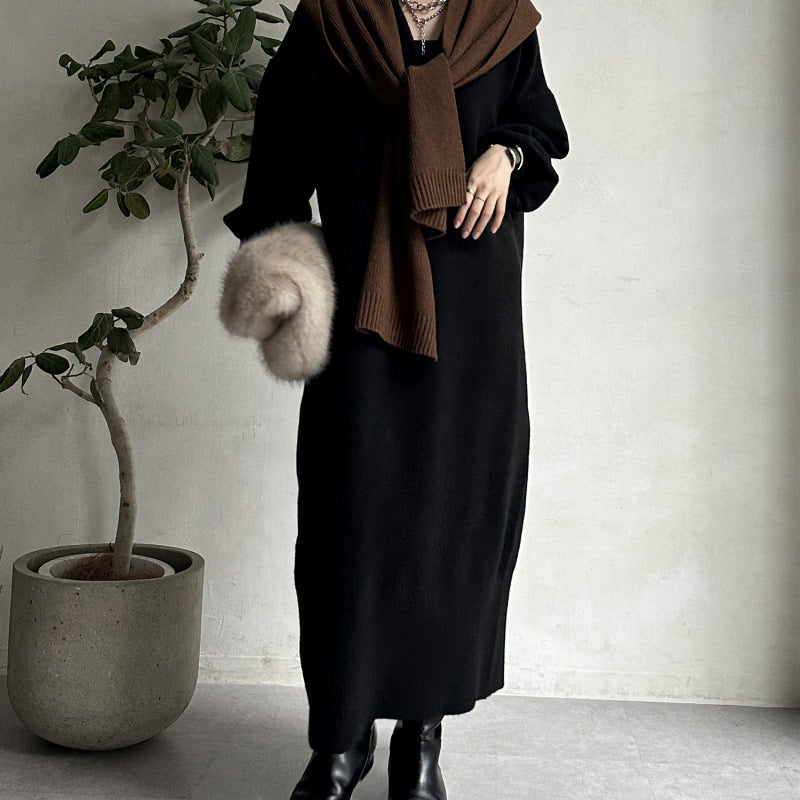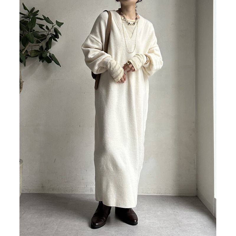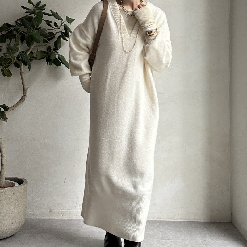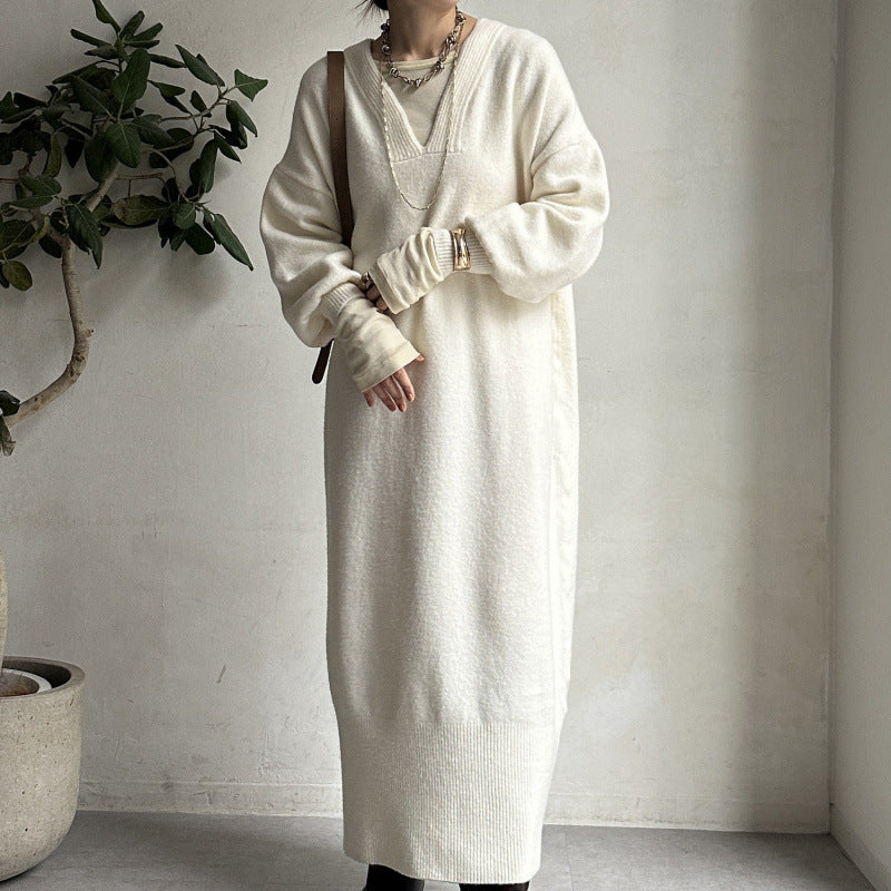 ニットワンピース レディース レイヤード スカート ニット セーター スカート スリット