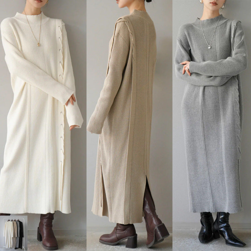 ニットワンピース レディース レイヤード スカート ニット セーター スカート スリット