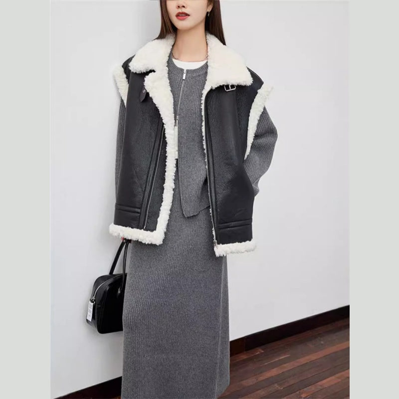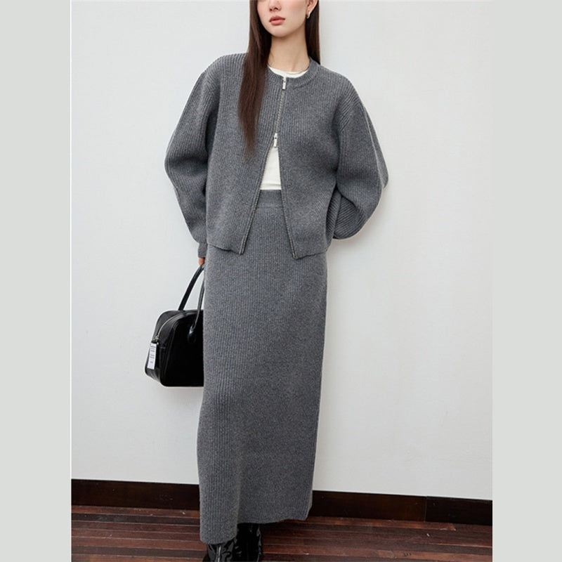 ニットワンピース レディース レイヤード スカート ニット セーター スカート スリット