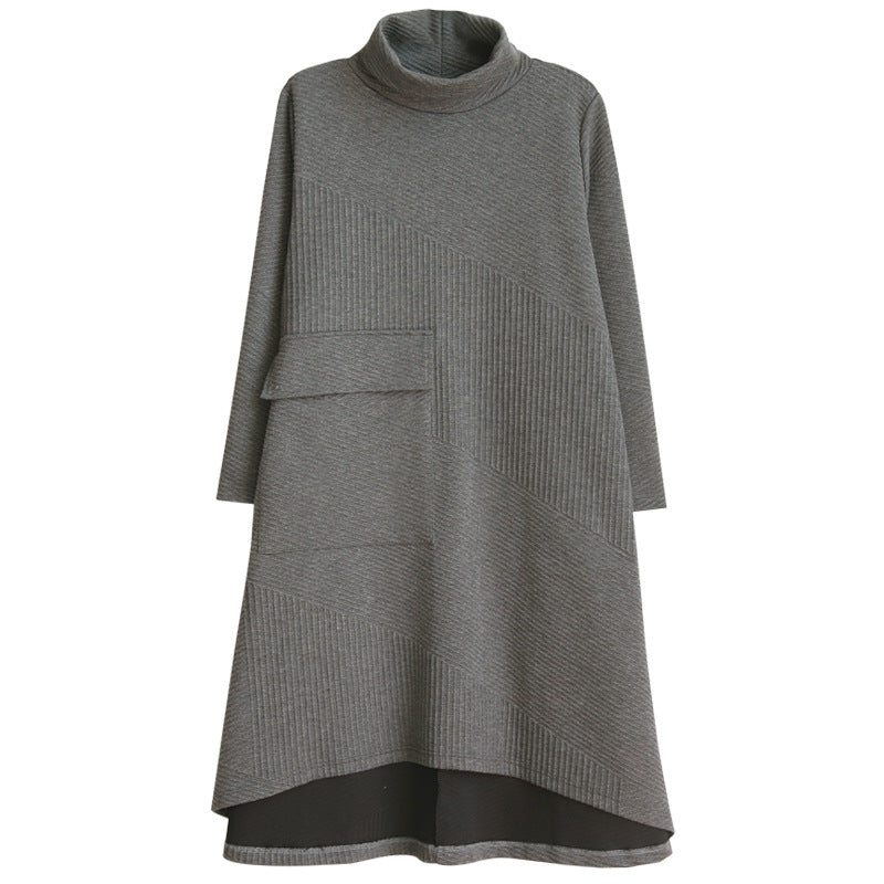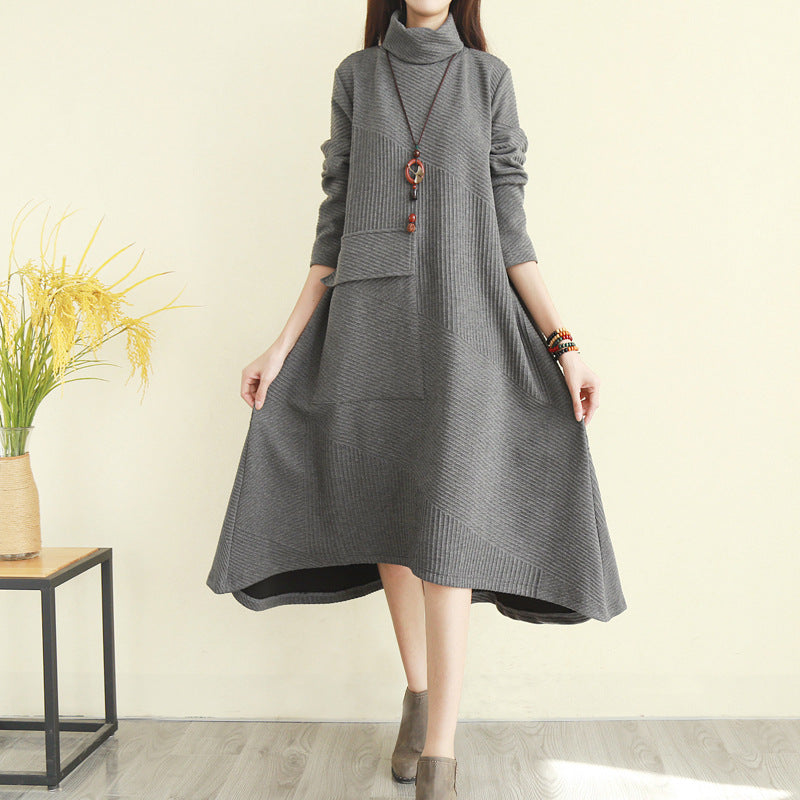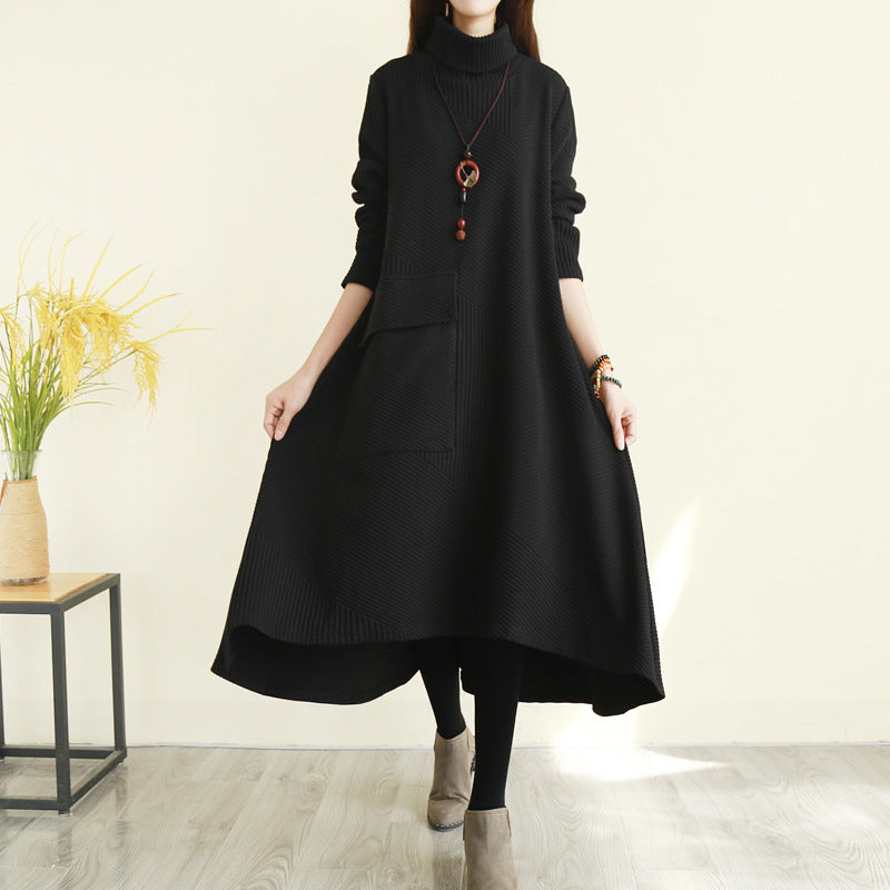 ニットワンピ ワンピース ニット 秋冬 長袖 ハイネック デザイン感 厚手 ロング丈 ゆったり