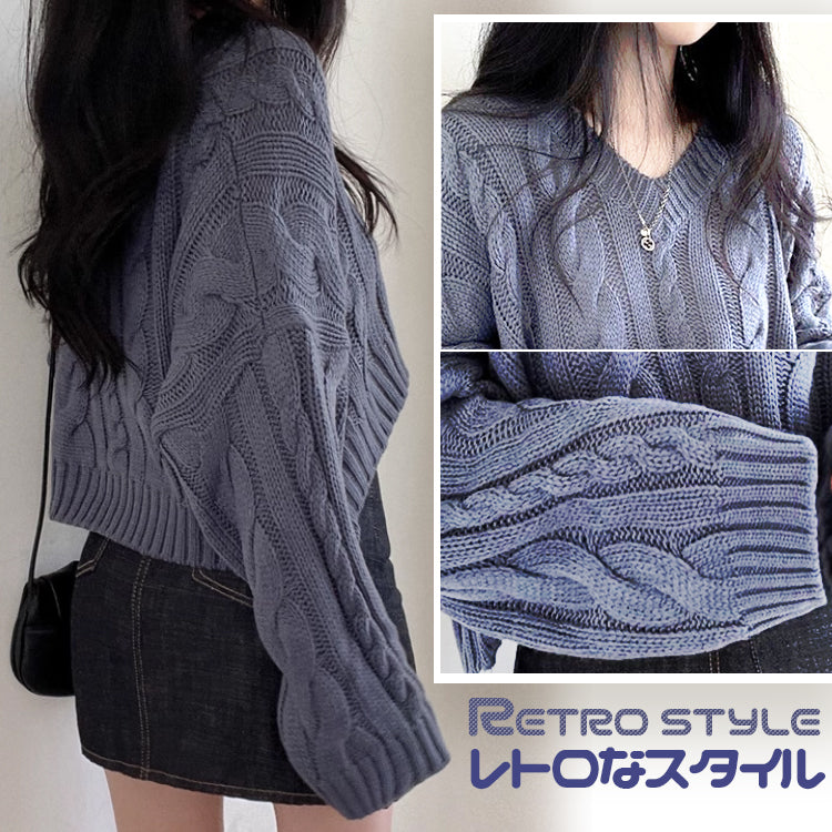 ニット 長袖ニット Vネックニット ヴィンテージニットセーター セーター