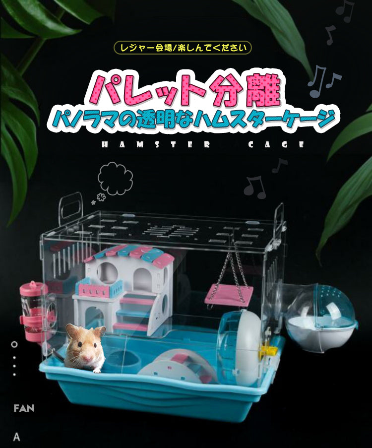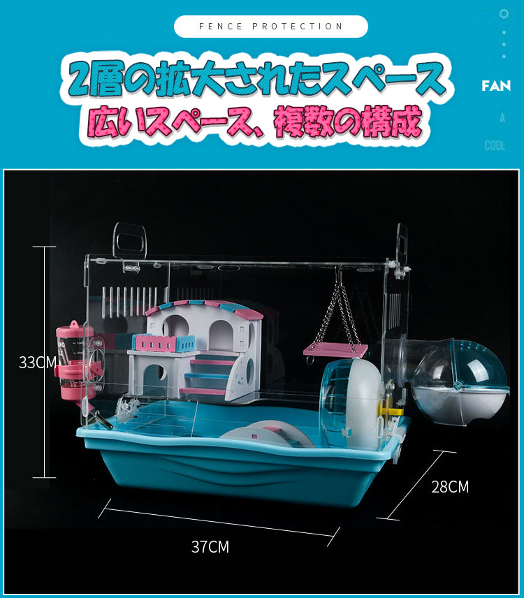 ハムスターケージ 小動物 小動物用ケージ 透明 給水ボトルなど含めて9点セット 組立式