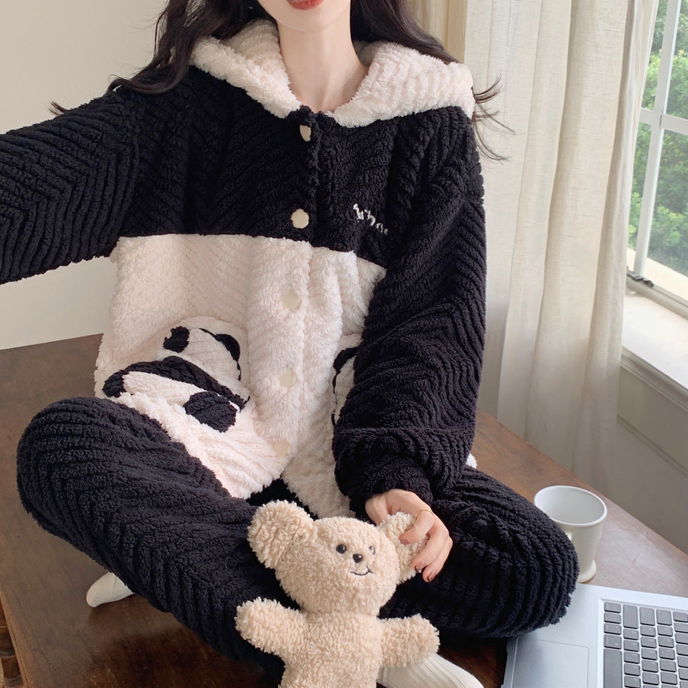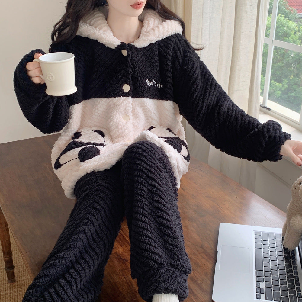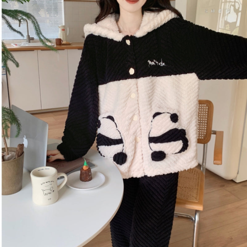 パジャマ 保温 ルームウェア パンダのパジャマ 部屋着 カップルパジャマ フランネル