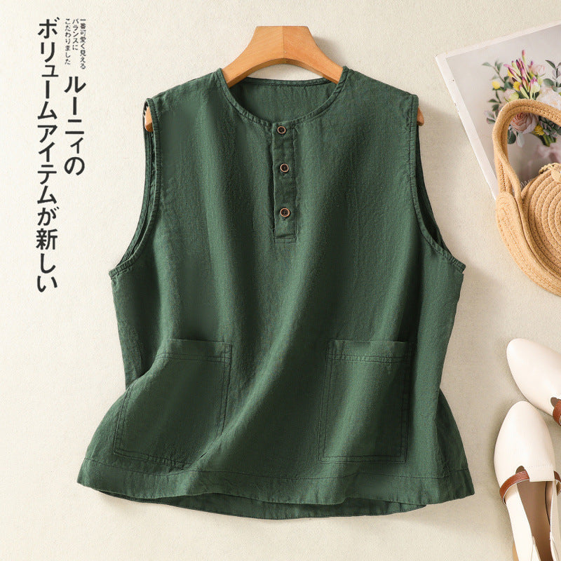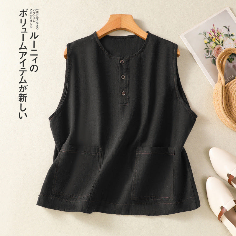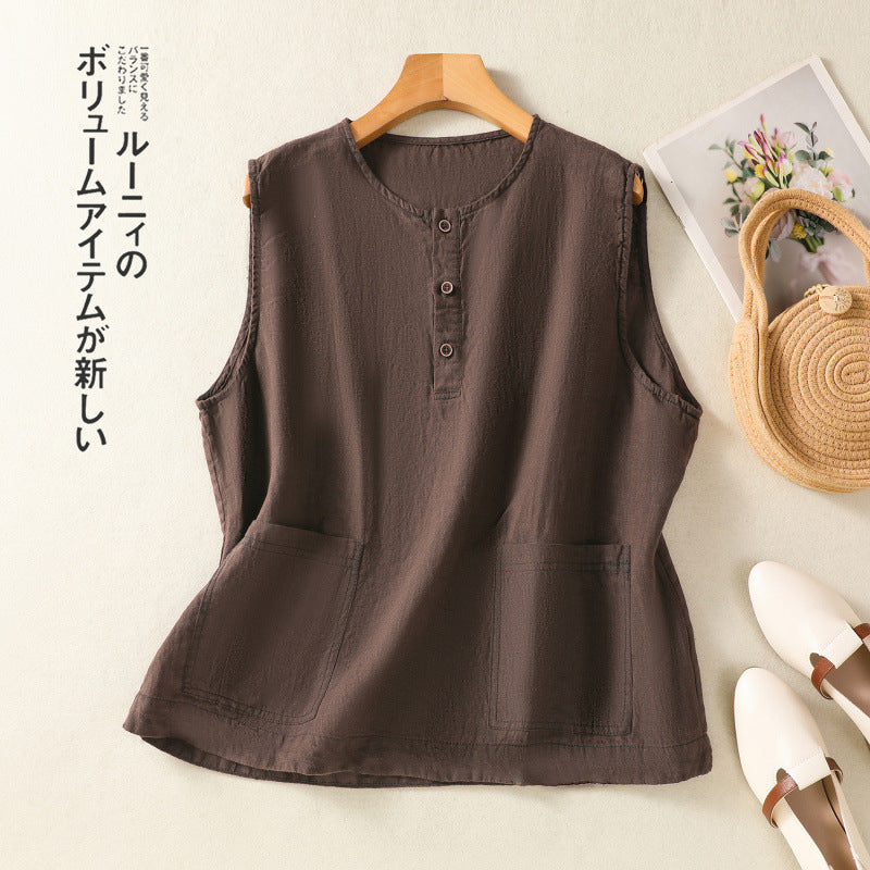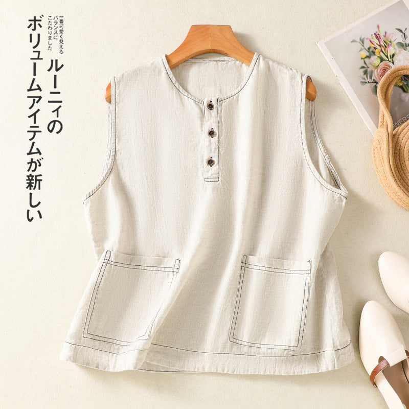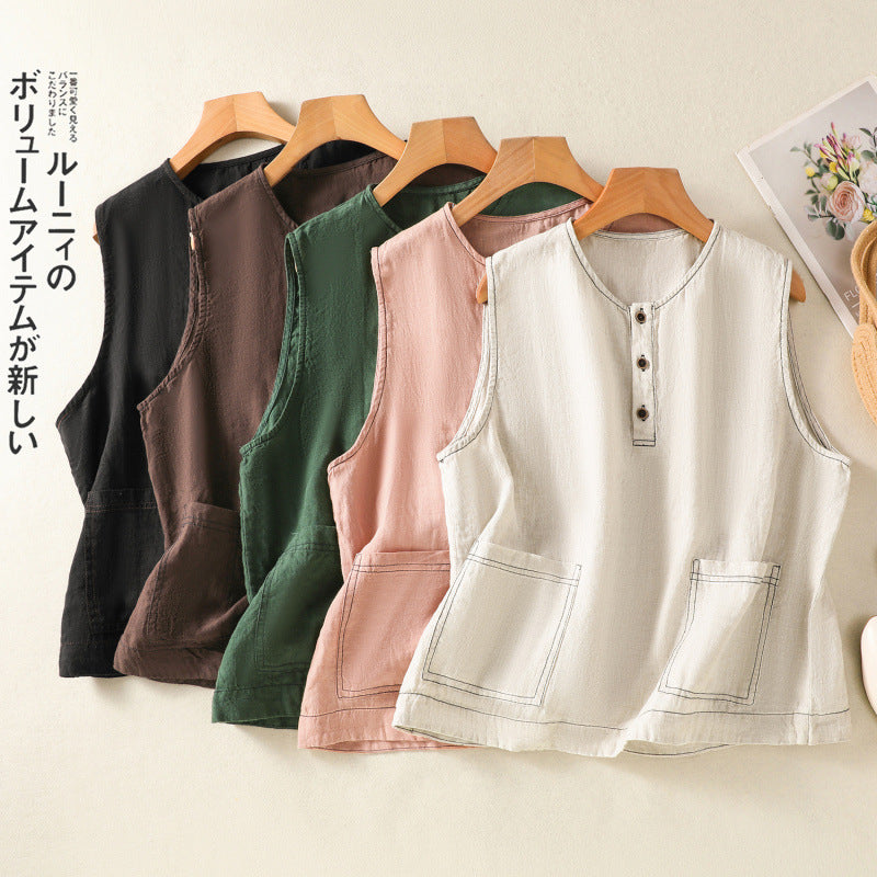 ベスト ジレ レディース トップス コットンリネン 大きいサイズ 夏 カジュアル