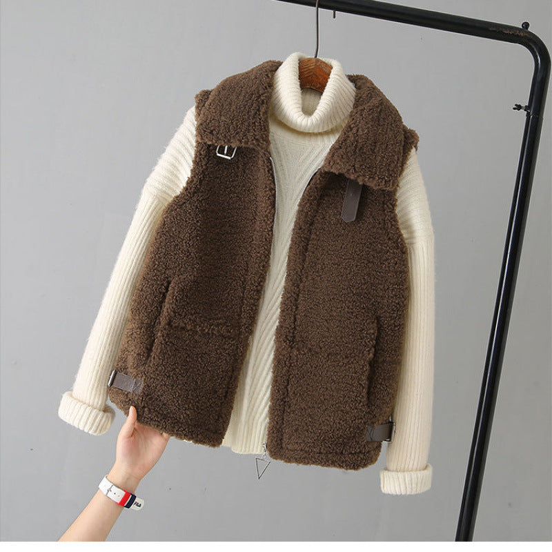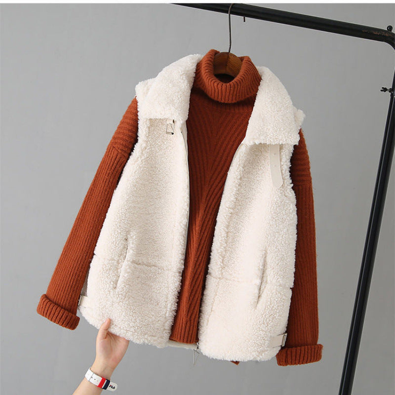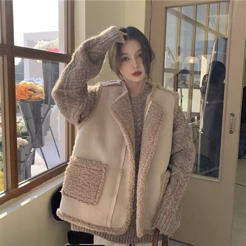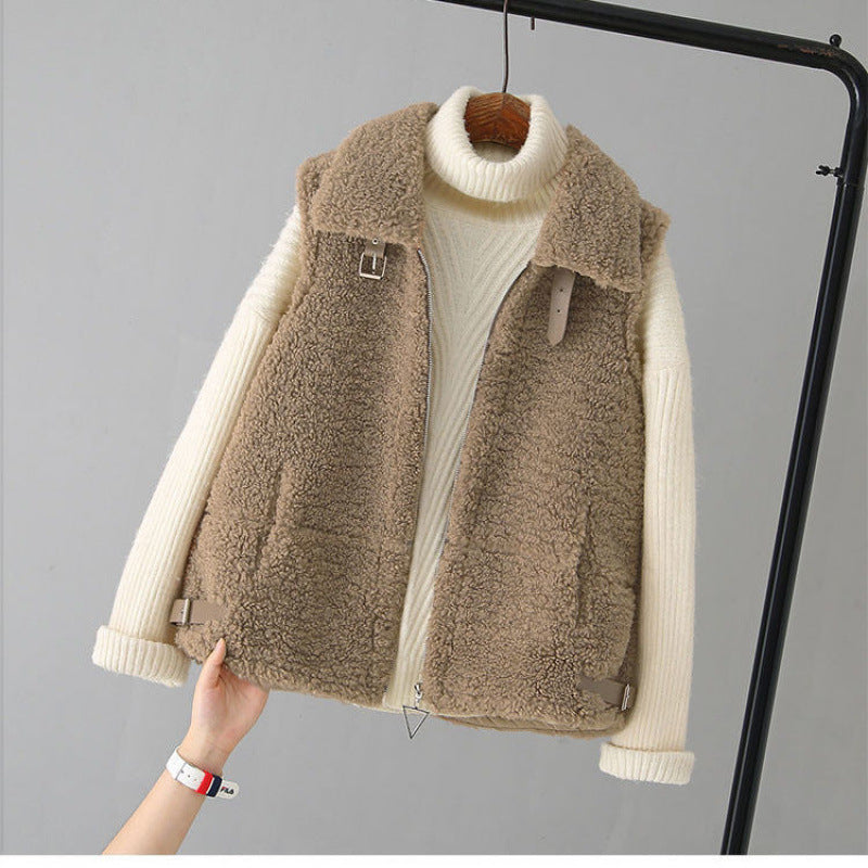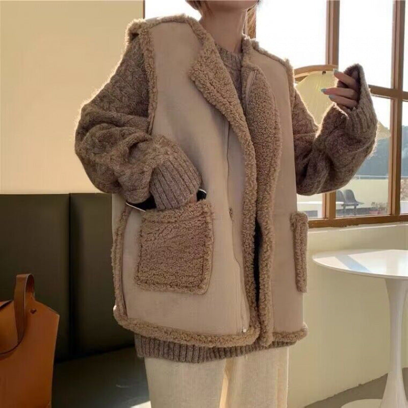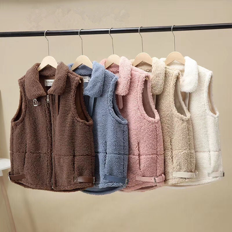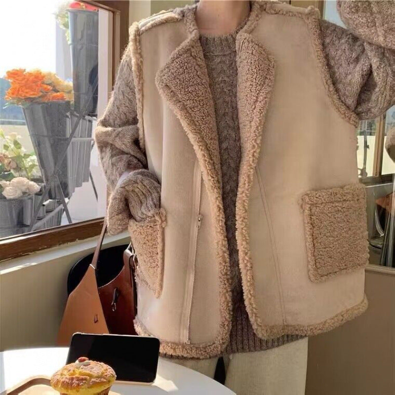 ベスト フェイク シープ ファーベスト ノースリーブ レディース 春秋 前開き