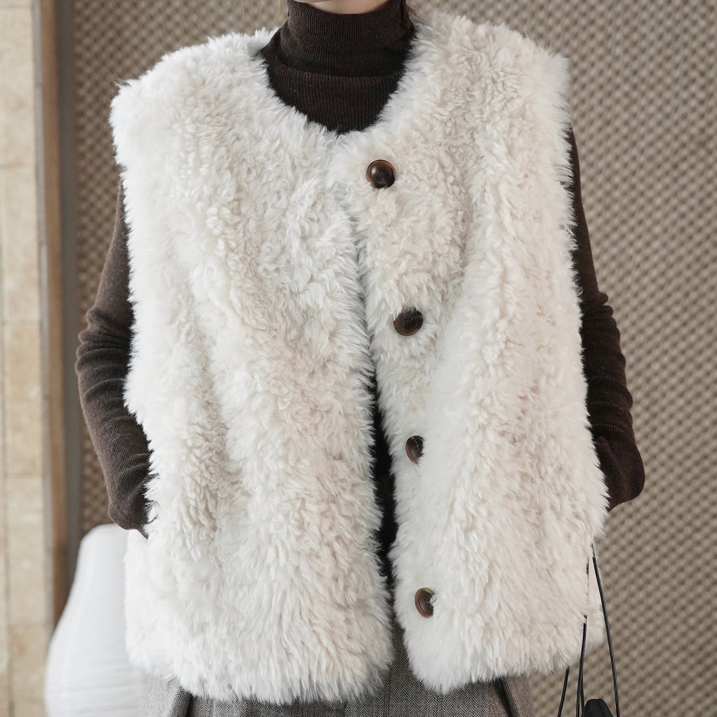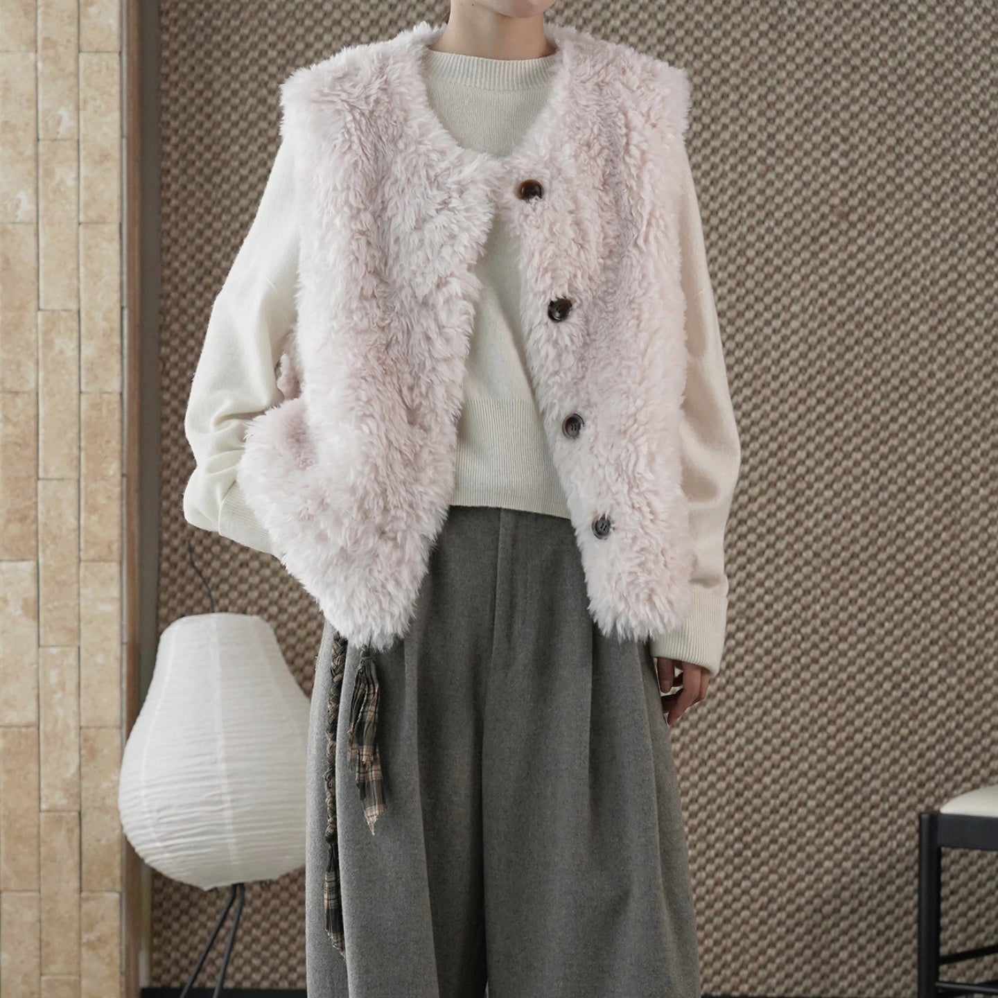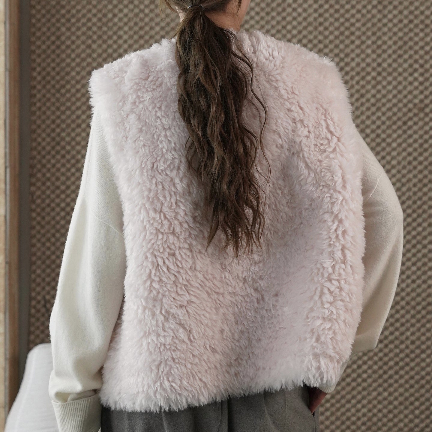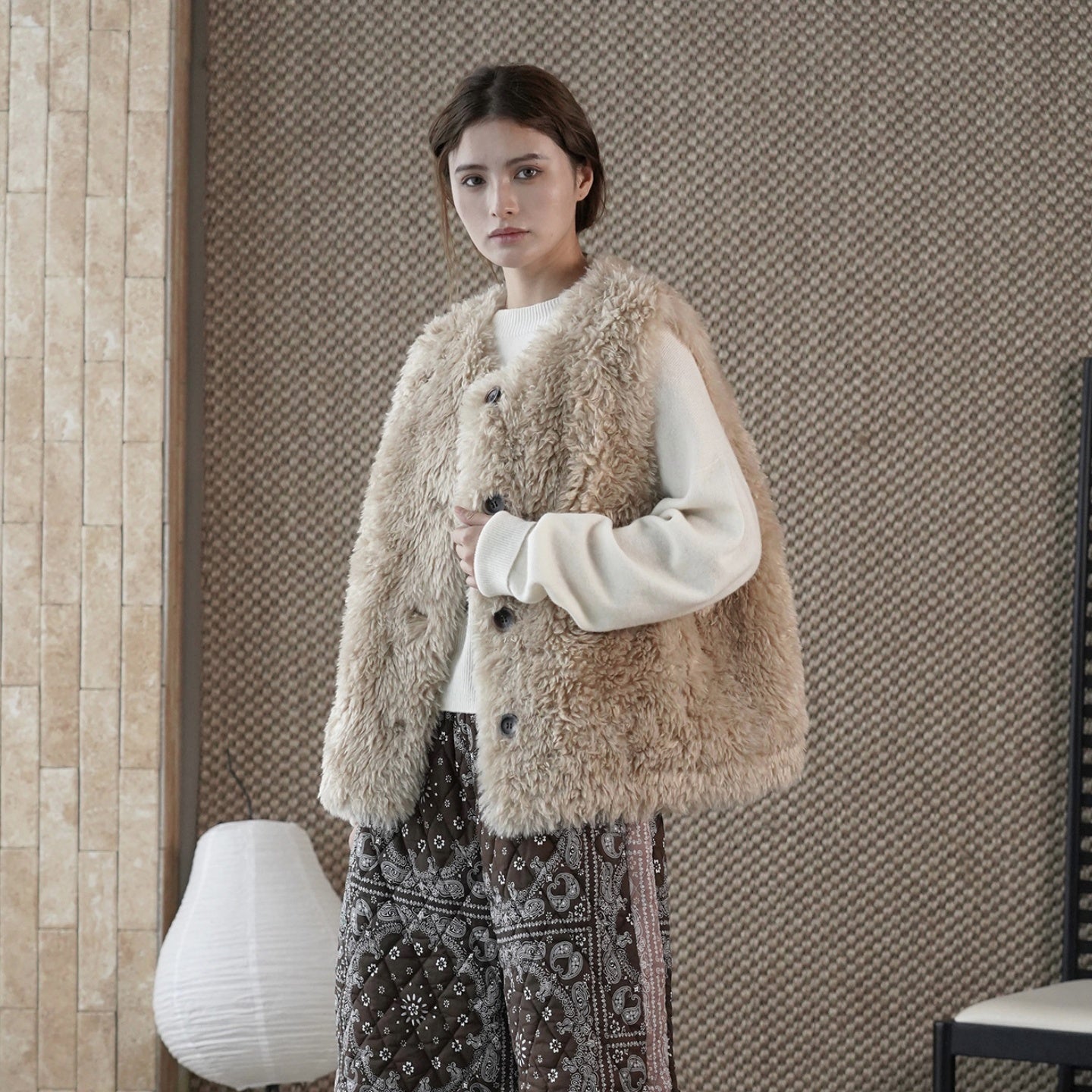 ベスト レディース 秋冬 フェイクファー 超柔らか モコモコ 単ボタン