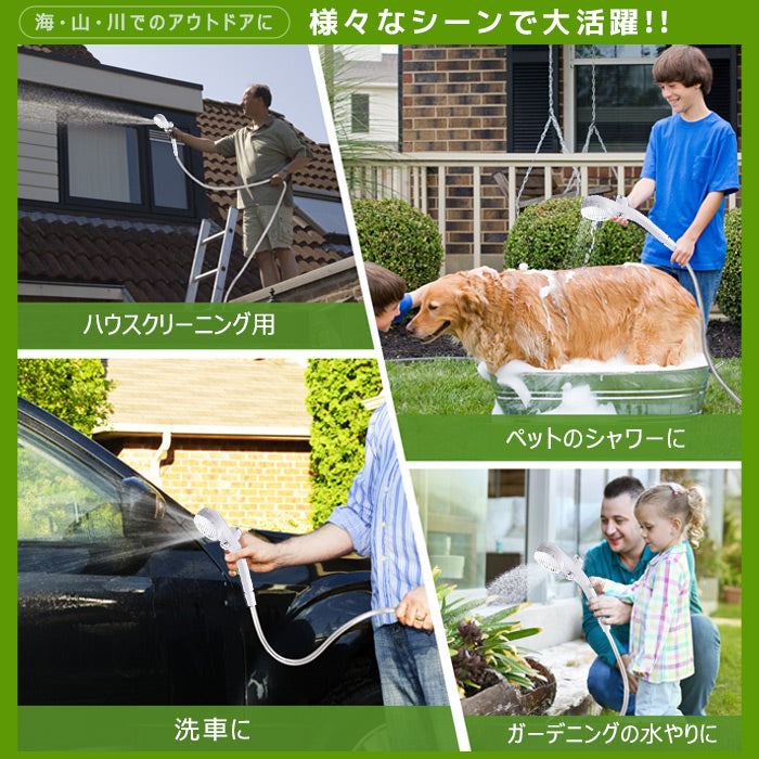 ポータブル シャワー 電動 簡易 シャワー アウトドアシャワー USB充電式 温度表示 水遣り