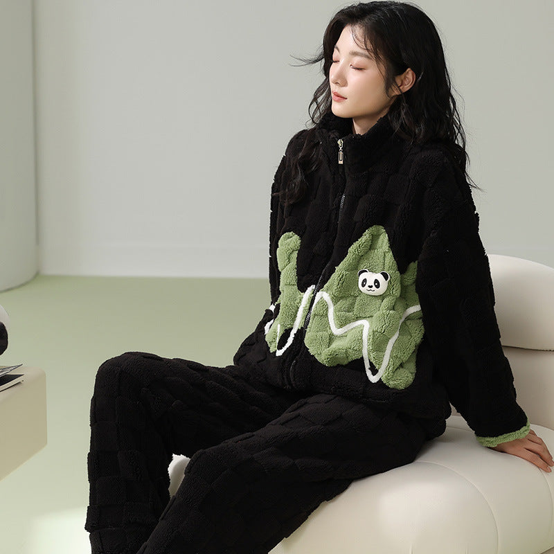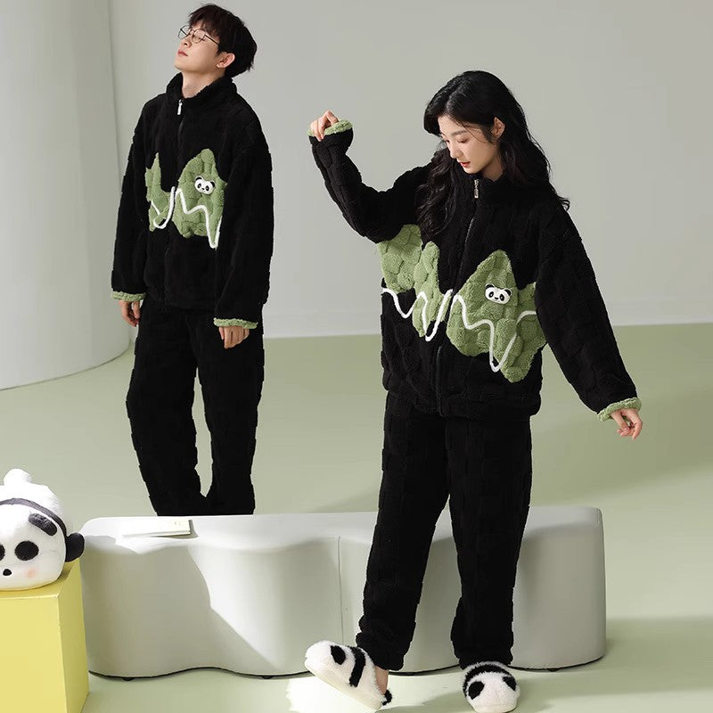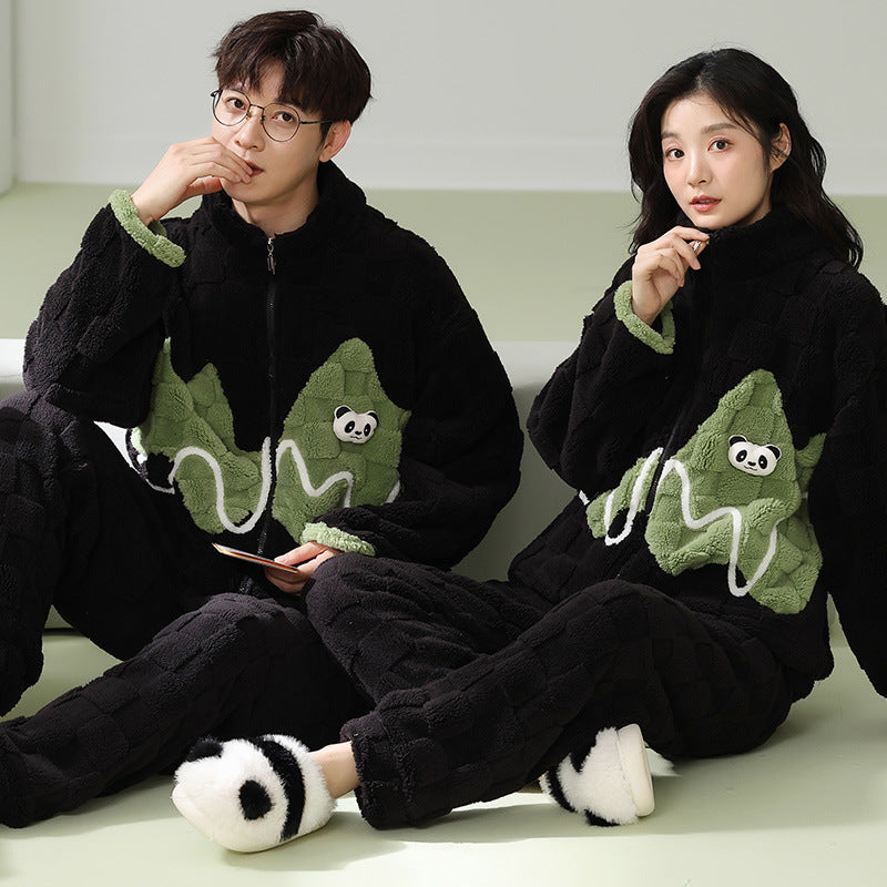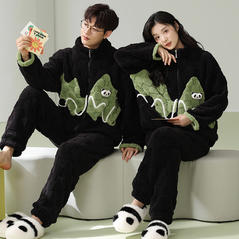ルームウェア パンダのパジャマ 部屋着 カップルパジャマ フランネル 上下セット レディース メンズ 秋 冬 パジャマ 寝間着
