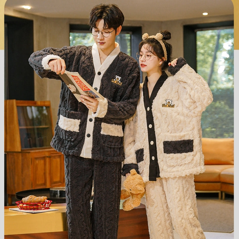 ルームウェア 部屋着 カップルパジャマ フランネル 上下セット レディース メンズ 秋冬 パジャマ 寝間着 暖かい