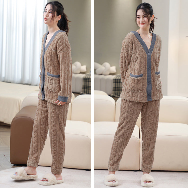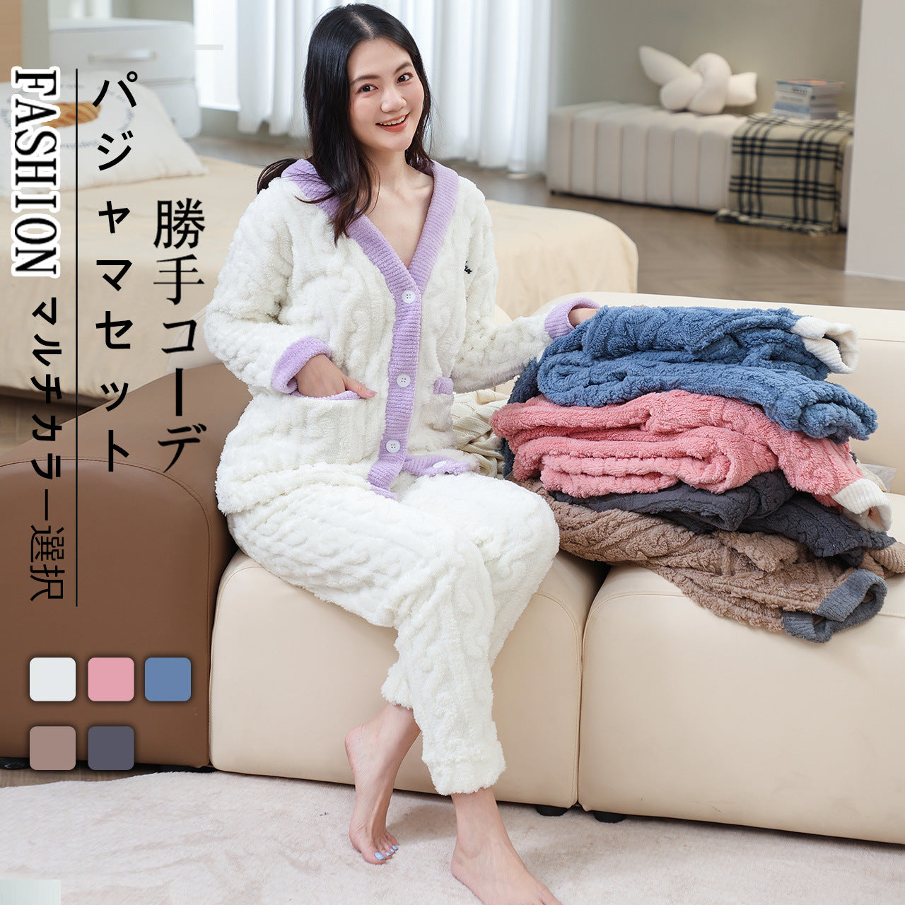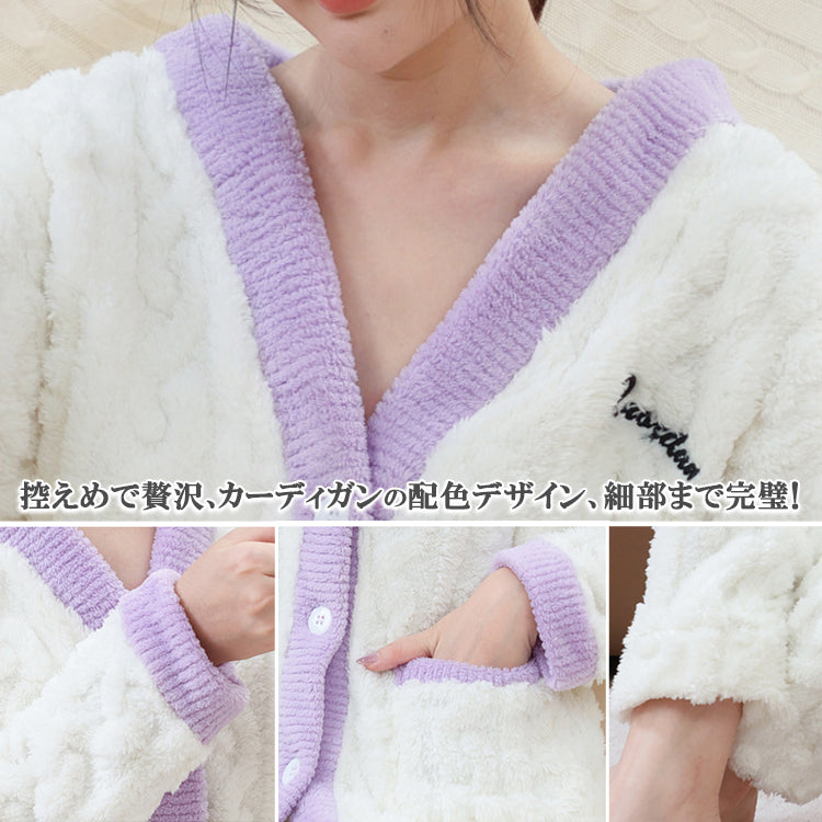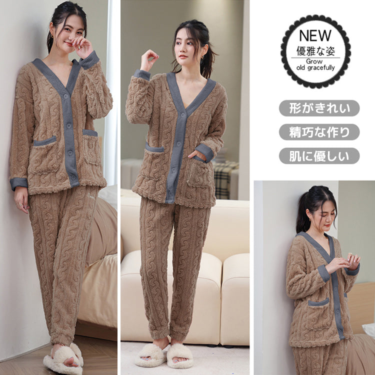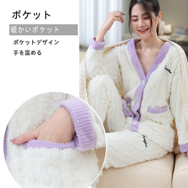 ルームウェア 長袖 上下セット ゆったり もこもこ レディース 冬用無地 パジャマ