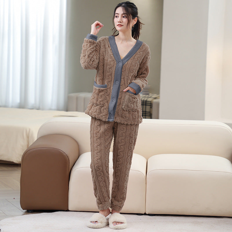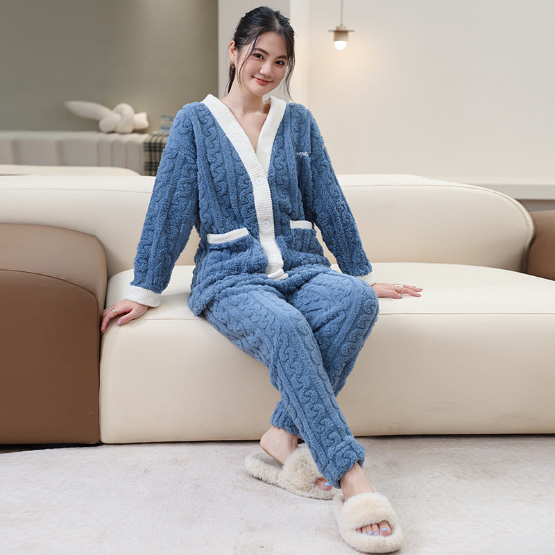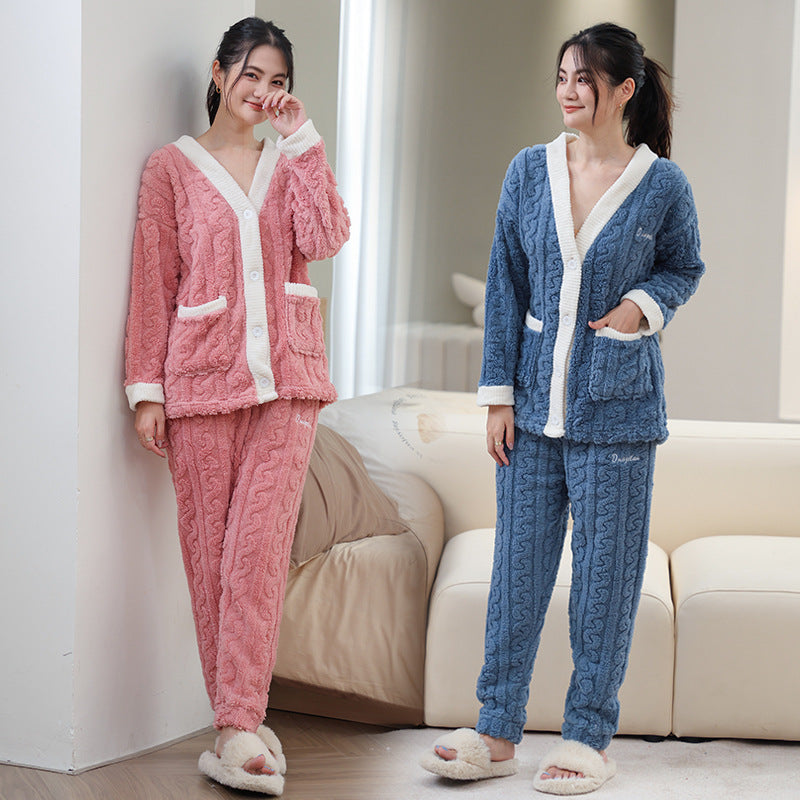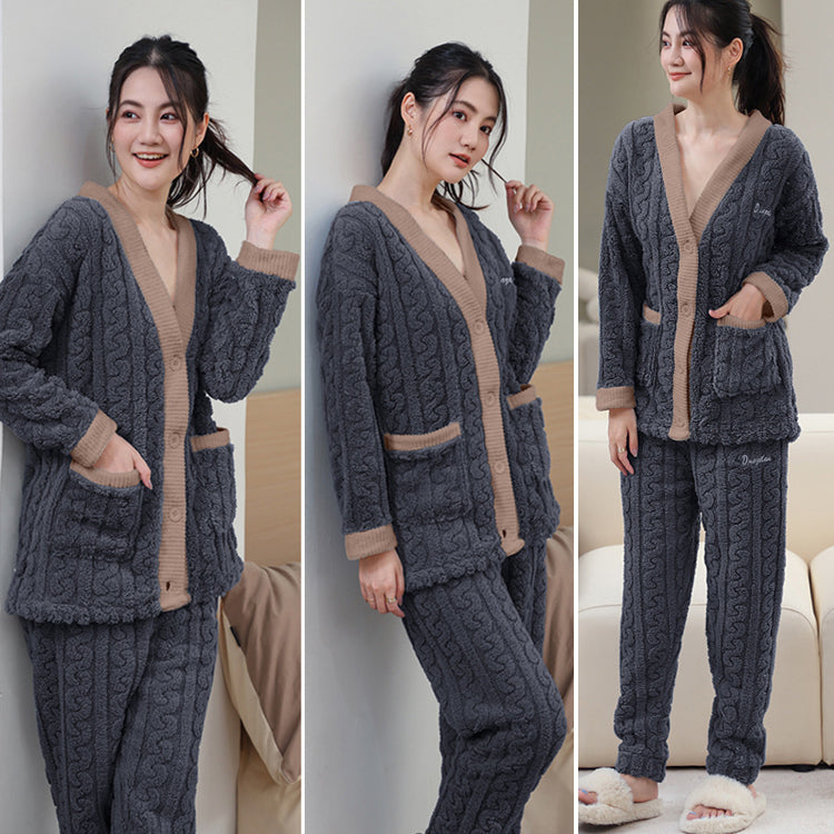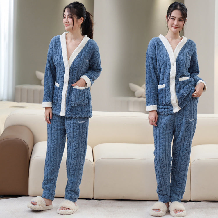 ルームウェア 長袖 上下セット ゆったり もこもこ レディース 冬用無地 パジャマ