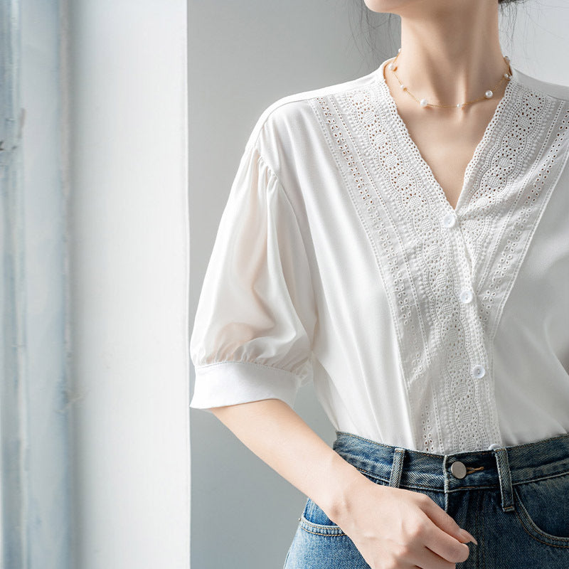 レディース シャツ ブラウス 夏 新作 高見え 上品 デザイン フリル Vネック