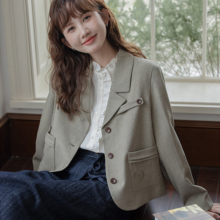 レディース スーツ ジャケット ブレザー シャツ セットアップ ショート丈