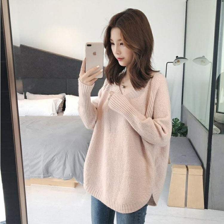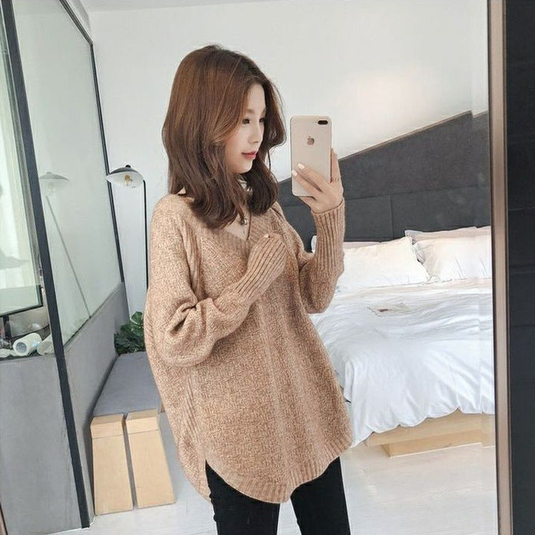 レディース ニット セーター プルオーバー Vネック 長袖 冬 厚手 ゆったり 外出用