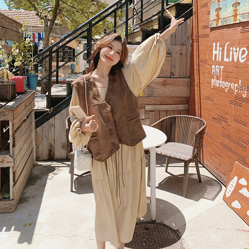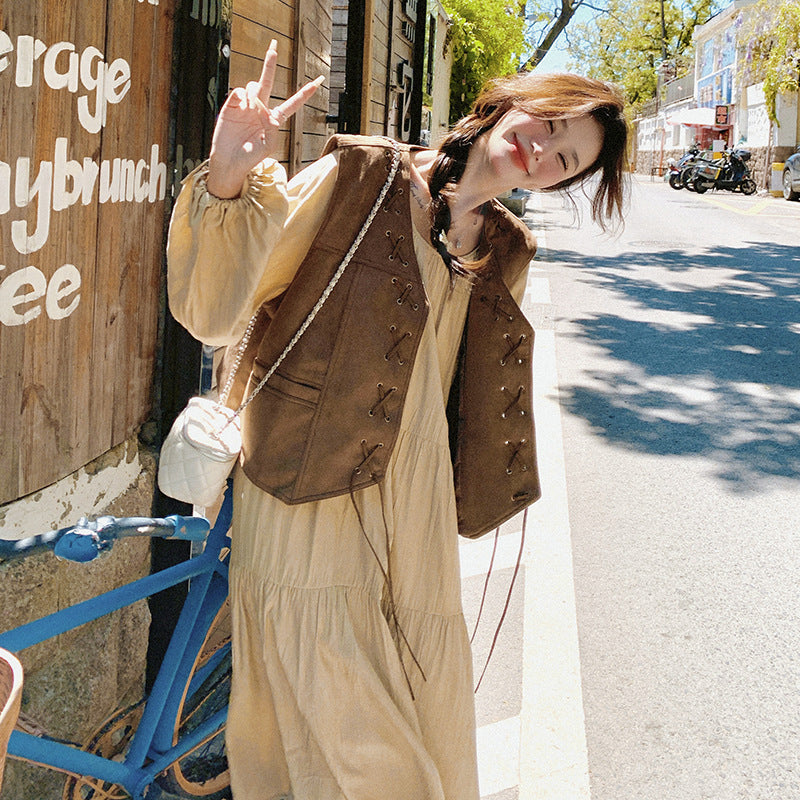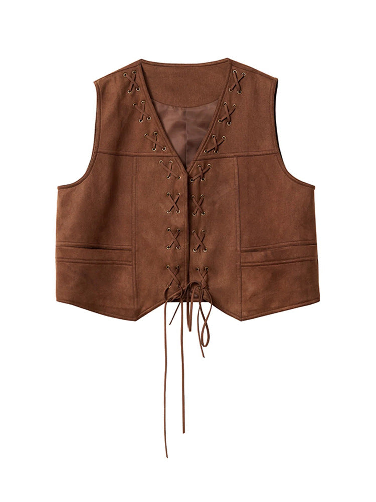 レディース ベスト ジレ スエード風 美ラードカラー キャメルブラウン アウター