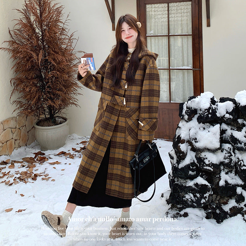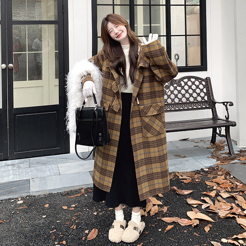 ロングウールコート ウールコート ロングコート チェックコート トグルコート