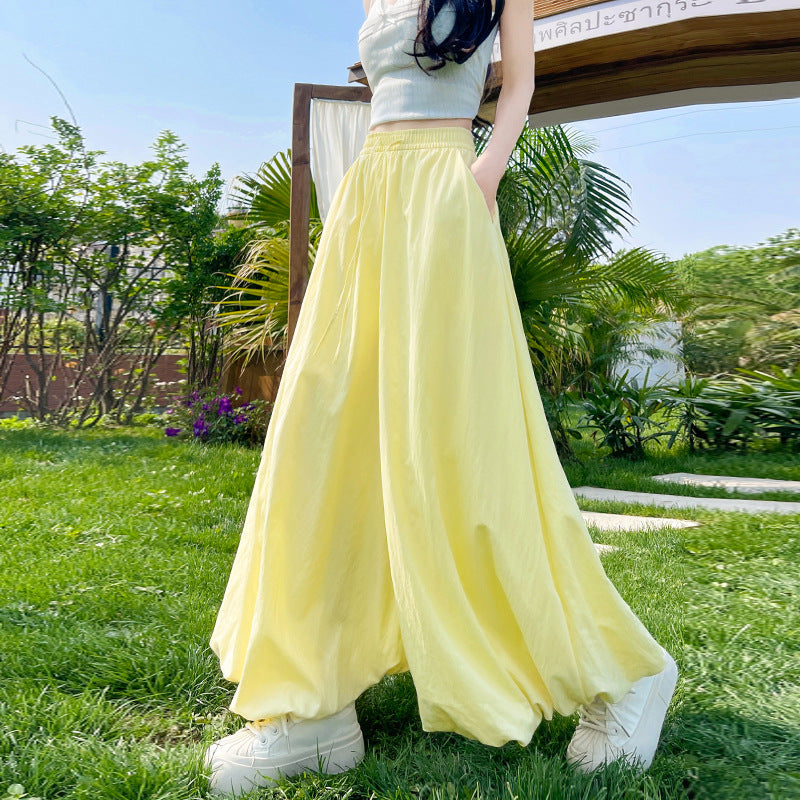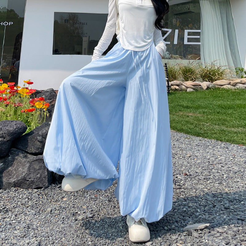 ワイドパンツ パンツ レディース 花びら ガウチョ ゆったり 着痩せ 薄手 高腰 ウエストゴム